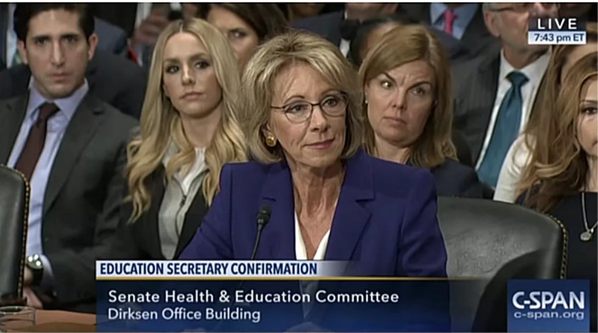 Betsy DeVos at her confirmation hearing in 2017.