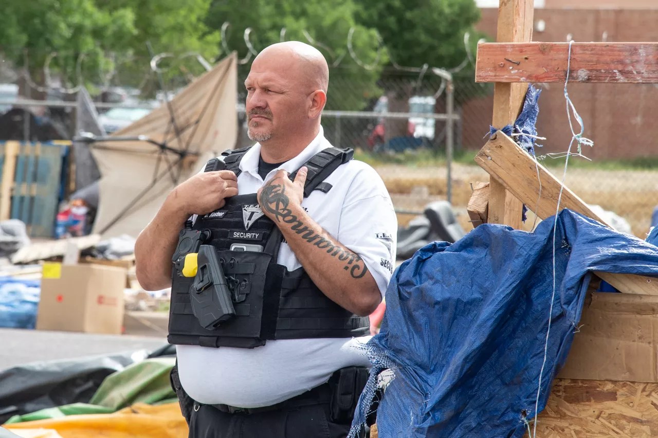 Security guards were on-hand in case tensions escalated. Two blocks away, a conflict broke out between two Zone residents who wildly swung crowbars and baseball bats. The incident was de-escalated by residents, and no one was harmed.