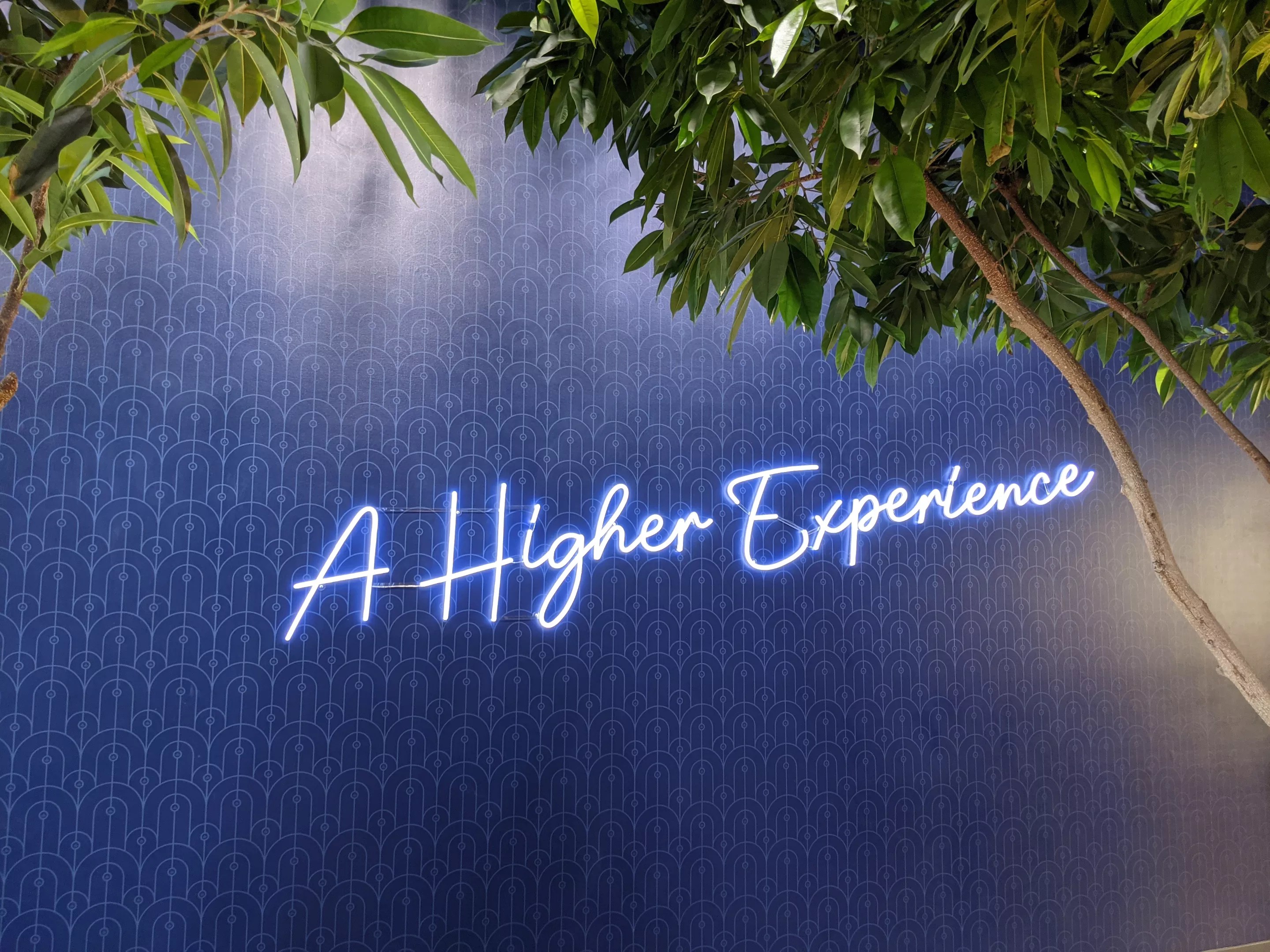Hundreds of people visited Cannabist when it opened to the public over Memorial Day weekend. The location sits on the corner of Price and Fifth, along the frontage road for the 101 freeway, anchoring an industrial office complex. There’s not much shade for the perpetual line of customers outside, but once they’re admitted into the lounge area, it’s a bit cooler, both in terms of temperature and aesthetics, with the aforementioned greenery, plus a blue neon sign that reads “A Higher Experience.”