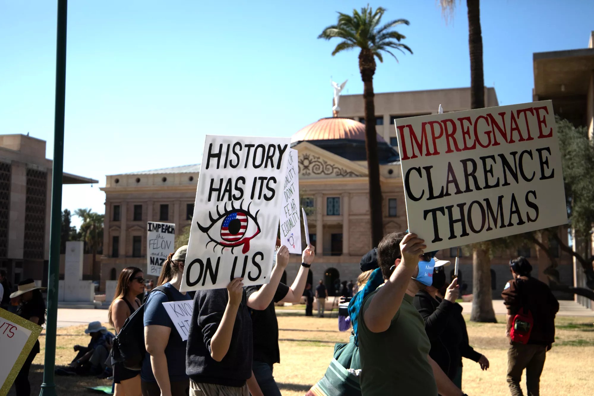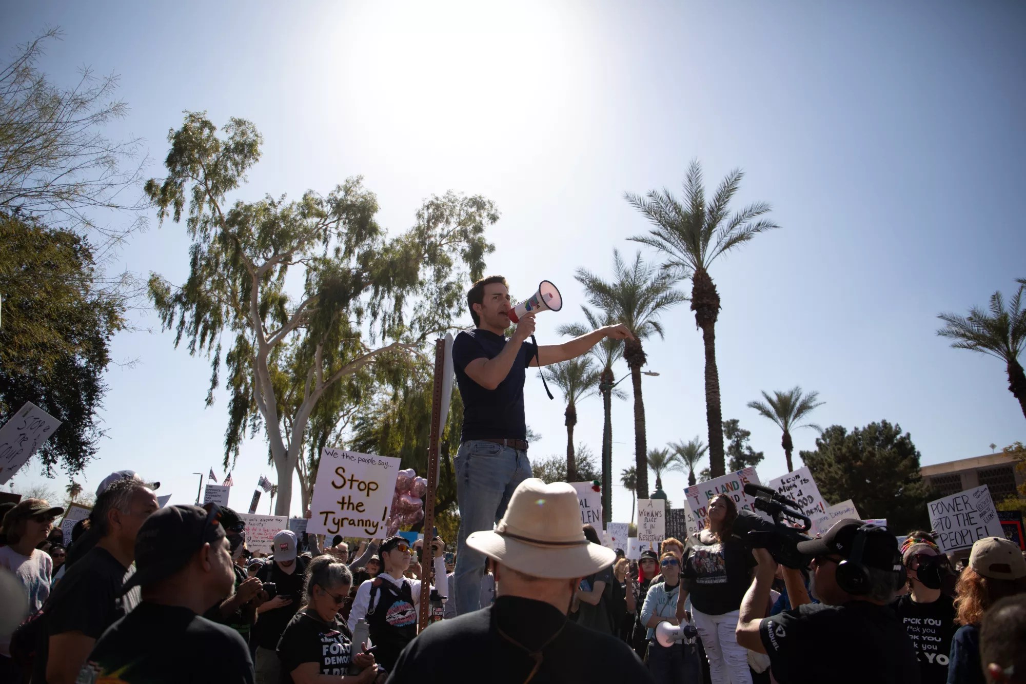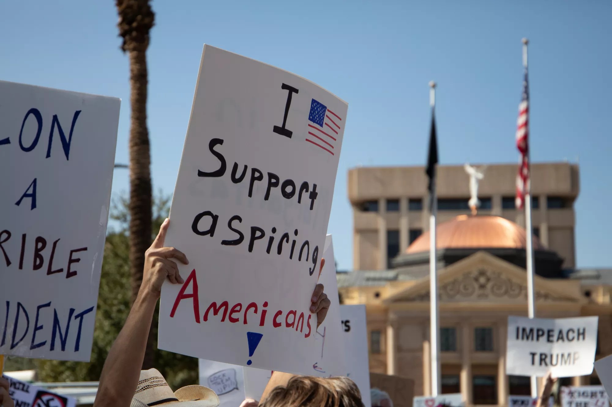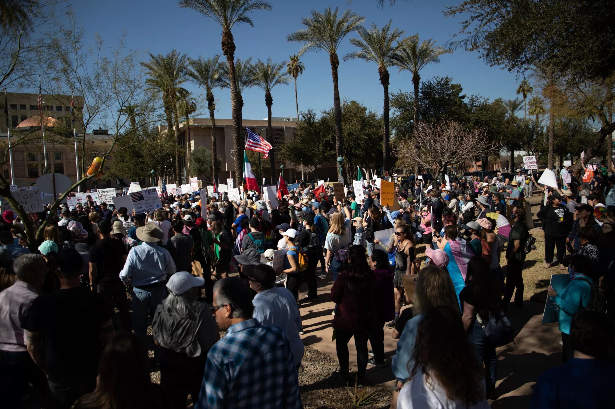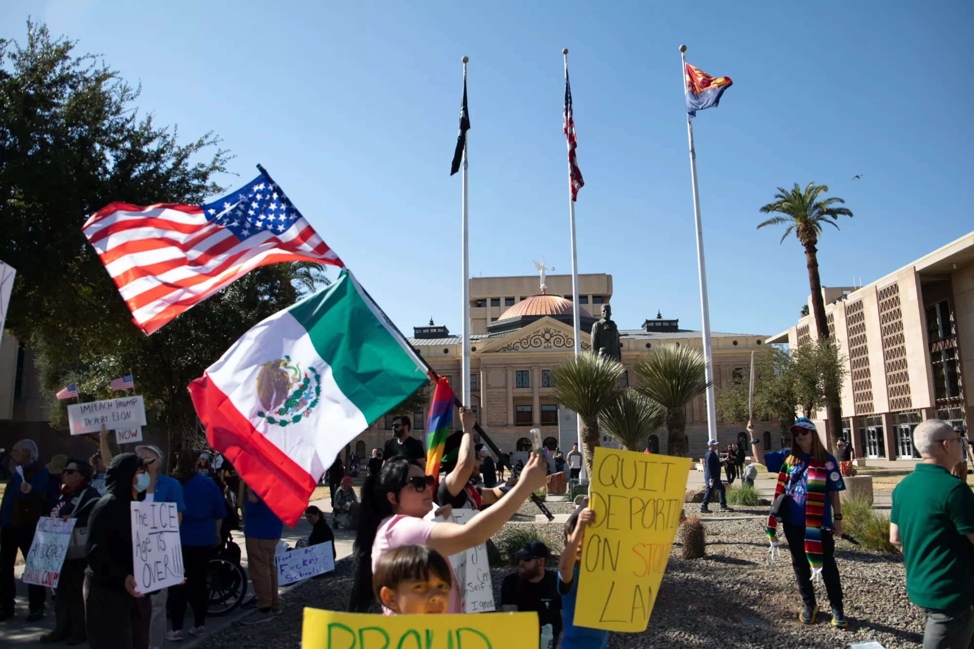 Throngs of protestors circled the Arizona State Capitol on Wednesday afternoon, calling on lawmakers to stand up to a Trump administration that flouts the rule of law while a docile Congress – including Arizona’s leaders – barely flinches in response.