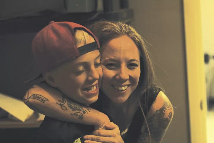Christopher Martin, the 12-year-old CEO of Paw Puddy, gets a hug from his mother, Andi Martin.
