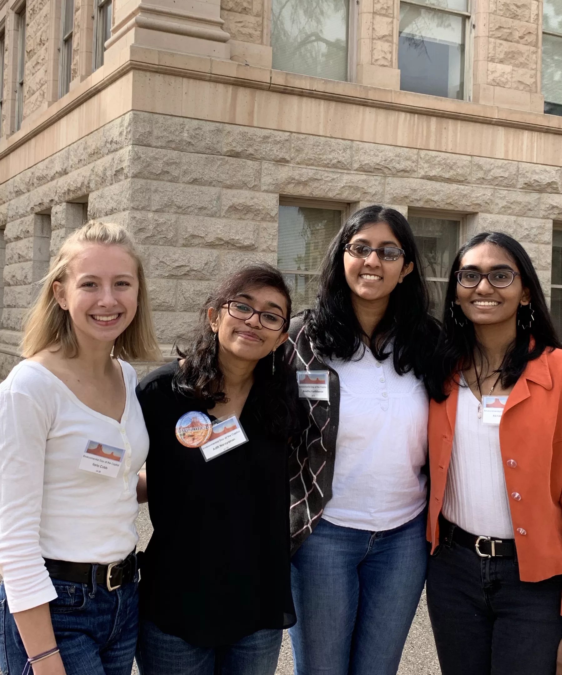Arizona students at the Capitol earlier this month for Environmental Day. Students like Aditi Narayanan, second from left, are organizing a walkout to demand action on climate change.