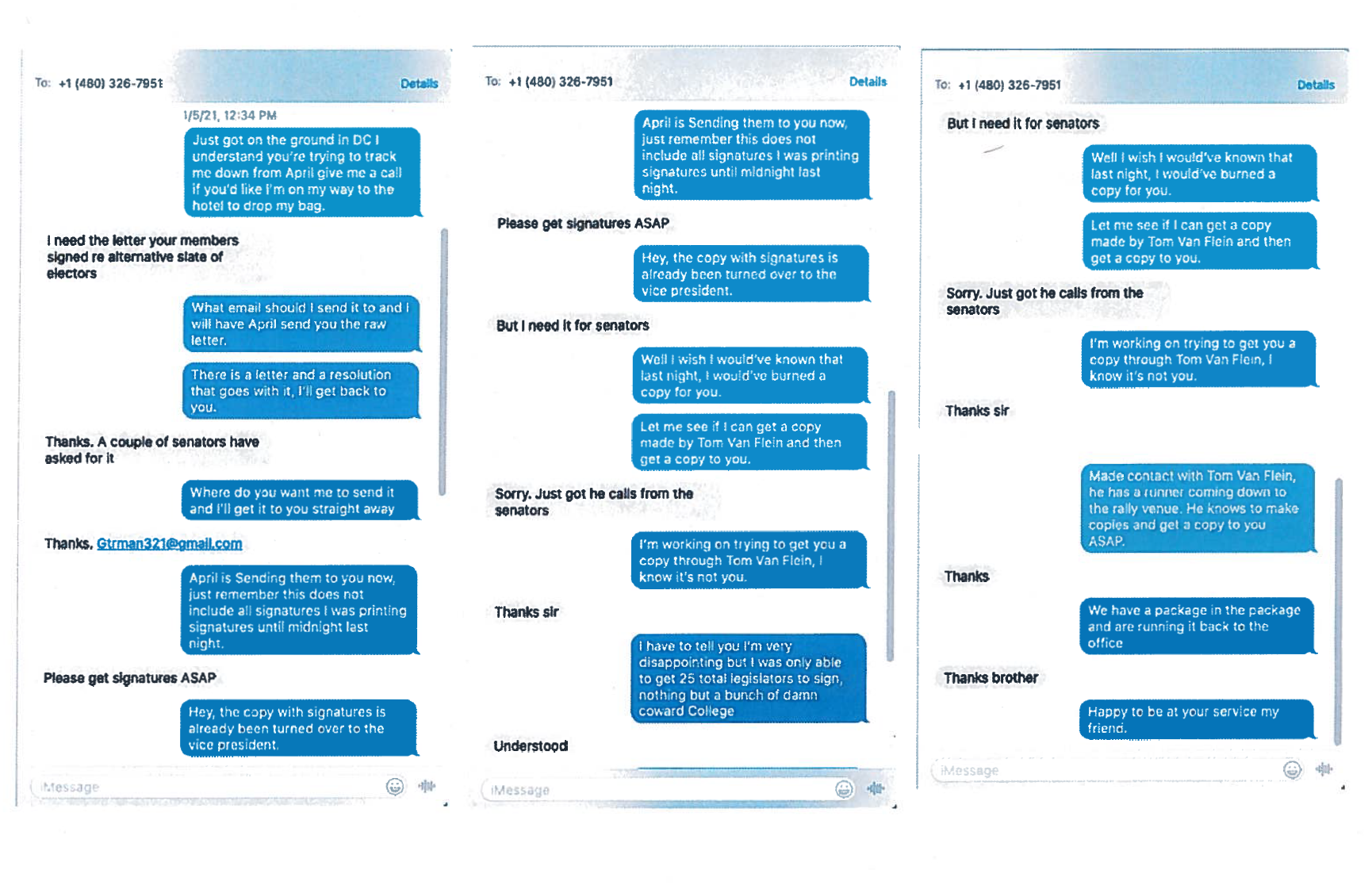 “I need the letter your members signed re alternative slate of electors,” Biggs replied. “A couple senators have asked for it.”