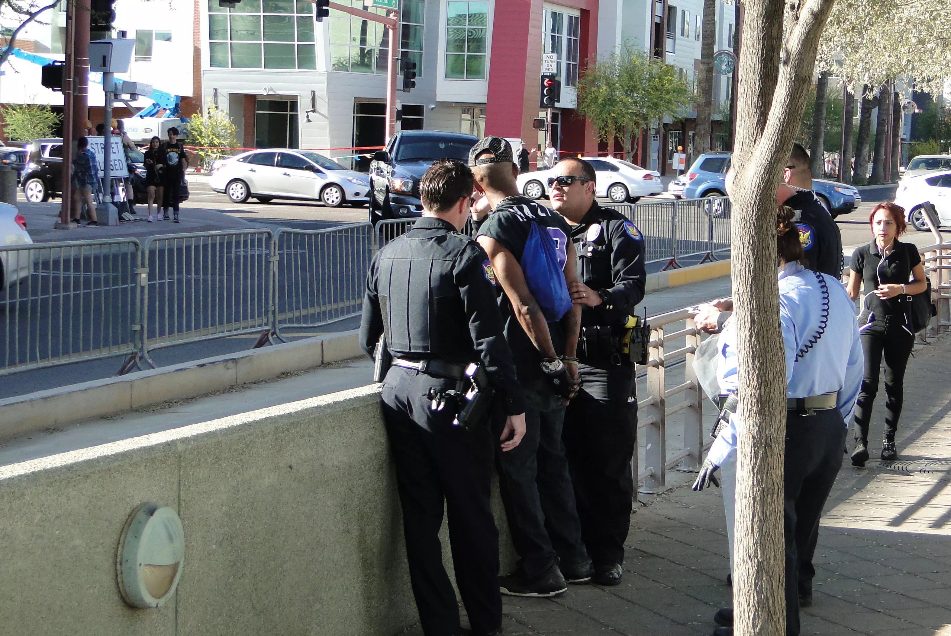 Phoenix Police detain a man at McDowell Metro Station Sunday afternoon.