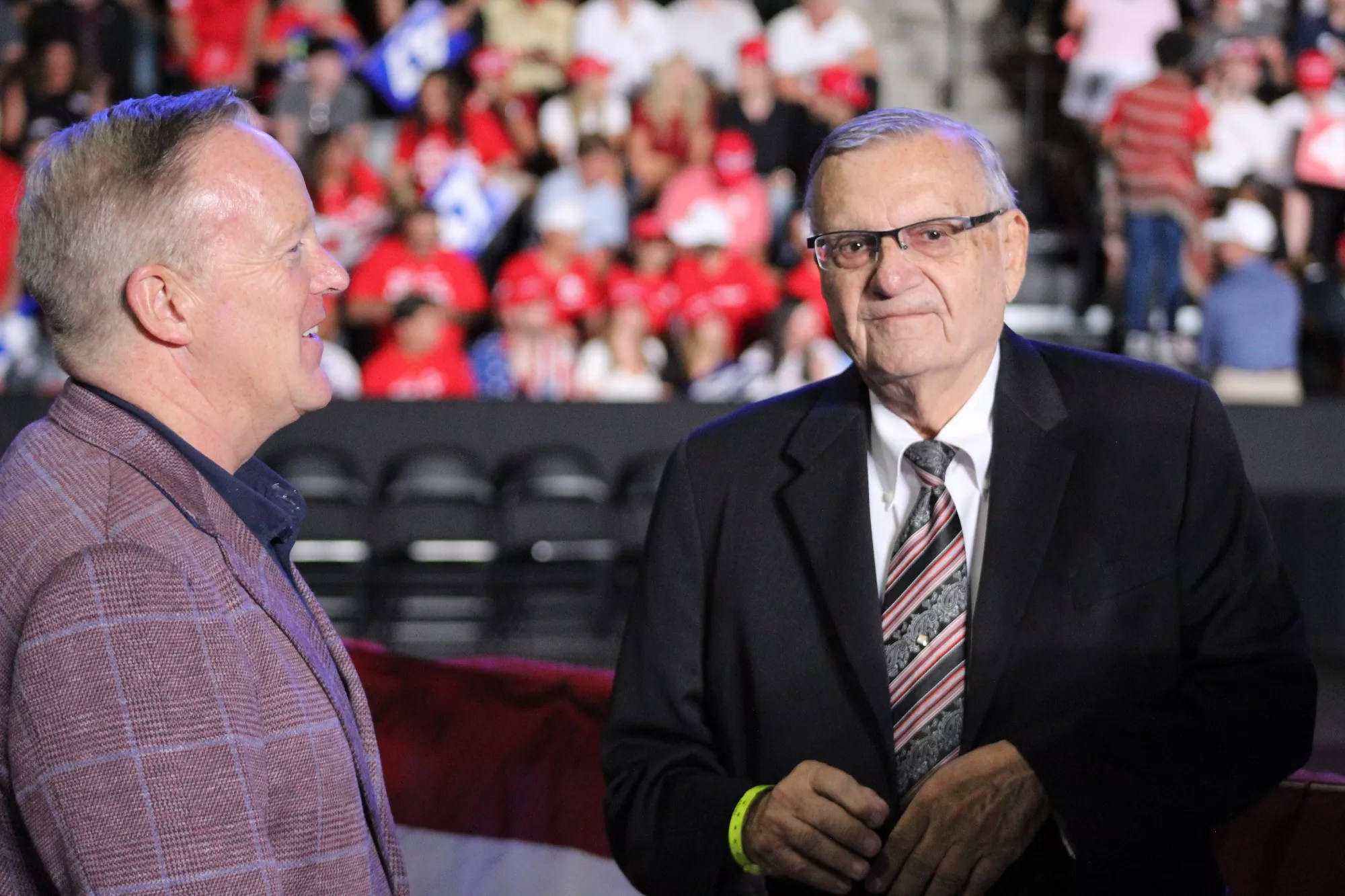 One was a glum-looking Joe Arpaio, the infamous former Maricopa County Sheriff. The other was former White House Press Secretary Sean Spicer, who famously got off to a bad start in the job defending Trump’s claims about the size of his 2016 inauguration crowd and ultimately left the administration six months later.