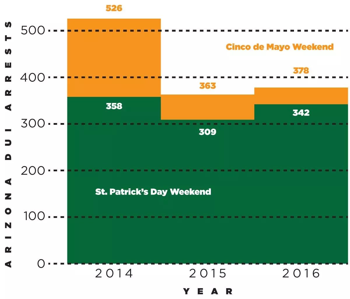 The numbers, compiled by the Arizona Governor’s Office of Highway Safety, are startlingly similar to those for St. Patrick’s Day.