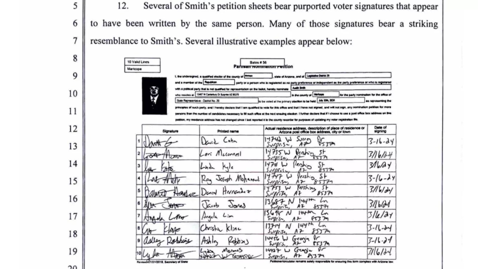 Smith took no accountability for the allegedly fraudulent signatures and said that he dropped out of the race because he didn’t want to spend tens of thousands defending himself in the civil elections challenge – as well as a possible criminal case for forgery. A candidate challenge to state Rep. Austin Smith, R-Surprise, alleges that he forged more than 100 voter signatures on his nominating petitions. Court documents