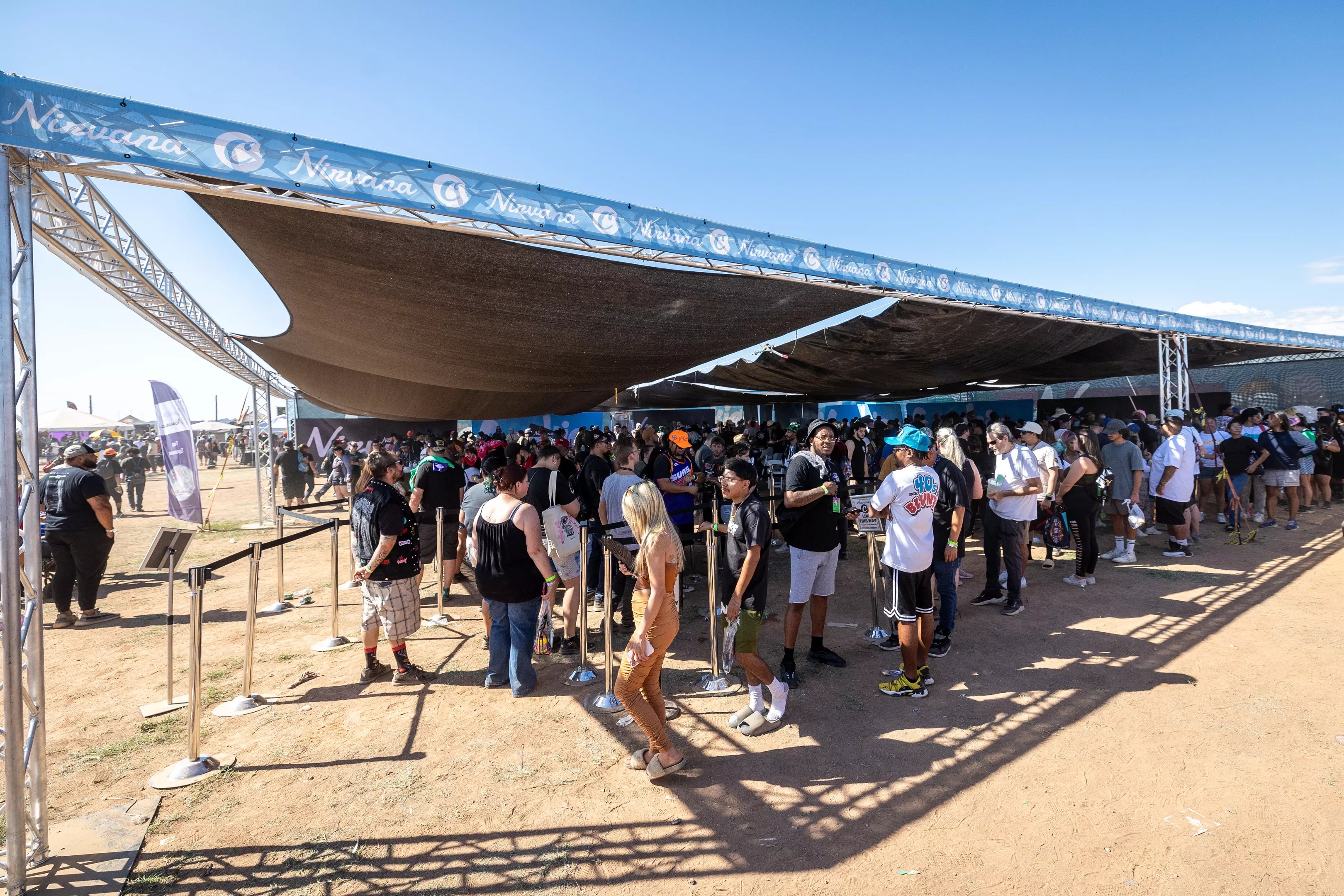 Nirvana provided shade for long lines people waiting to trying new products.