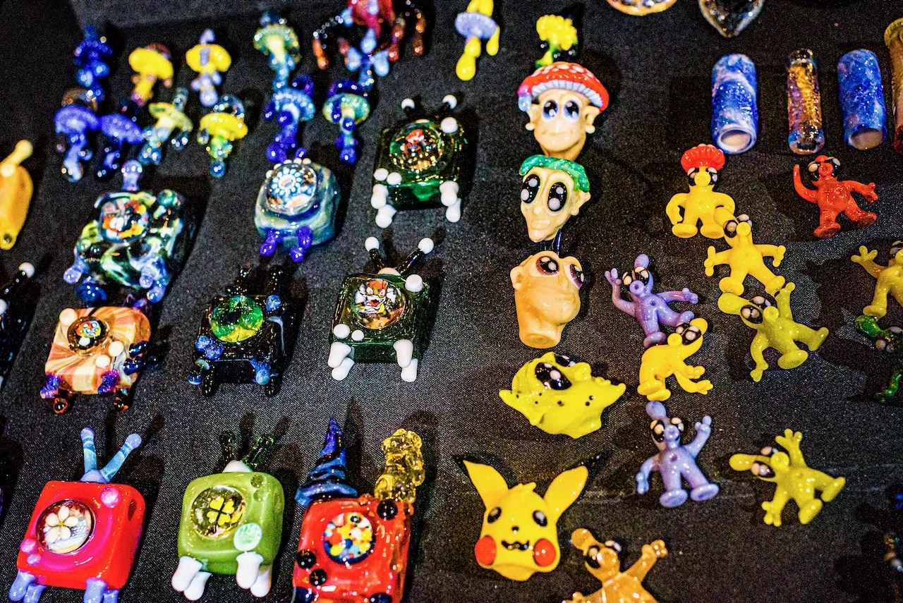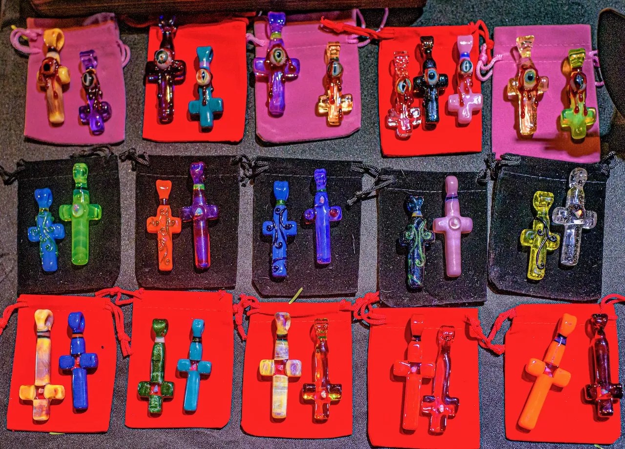 Arizona lampworker Austin Hensley sells his glass pendants.