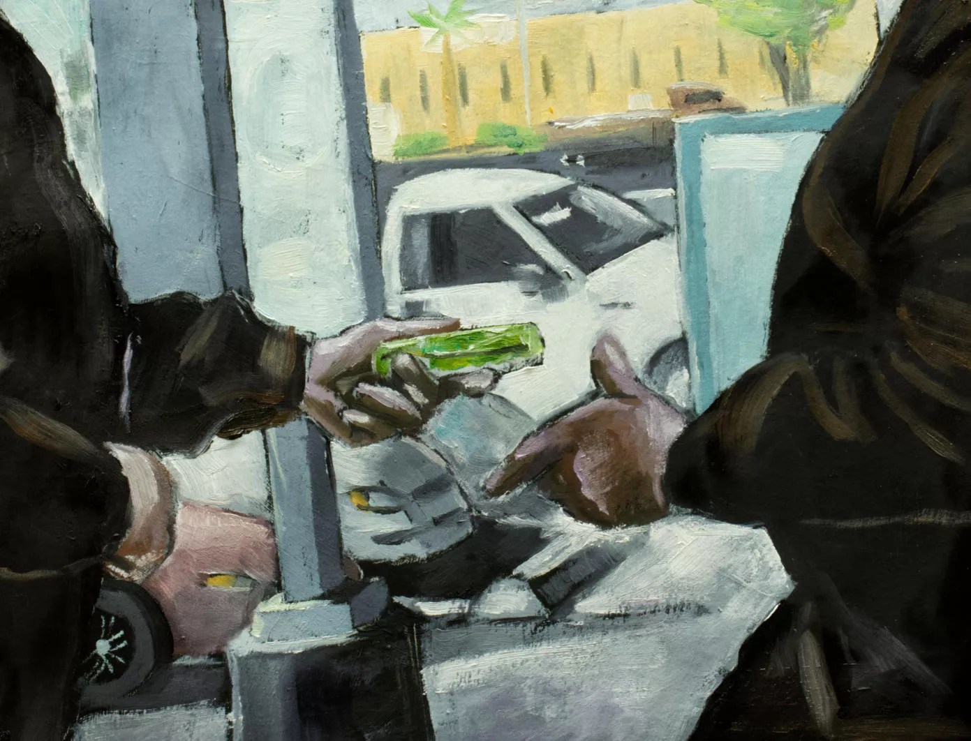 There was a man, that day, hovering by the shop entrance, making conversation with passersby. He looked a bit rundown, hawking his sales pitch, undeterred by the convenience store patrons who ignored him and continued on their way. He was handing out business cards for a pawn shop, his newest venture. Bouhdida stopped for a moment to speak with him.