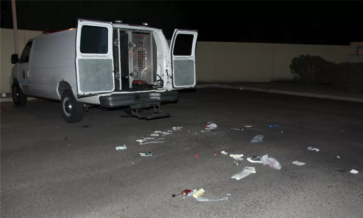 After northern command was finished with Violette, Officers Vincent Cole and Katrina Morales drove her in a white police van to the department’s central booking facility at 3445 South Central Avenue, about 21 miles south.