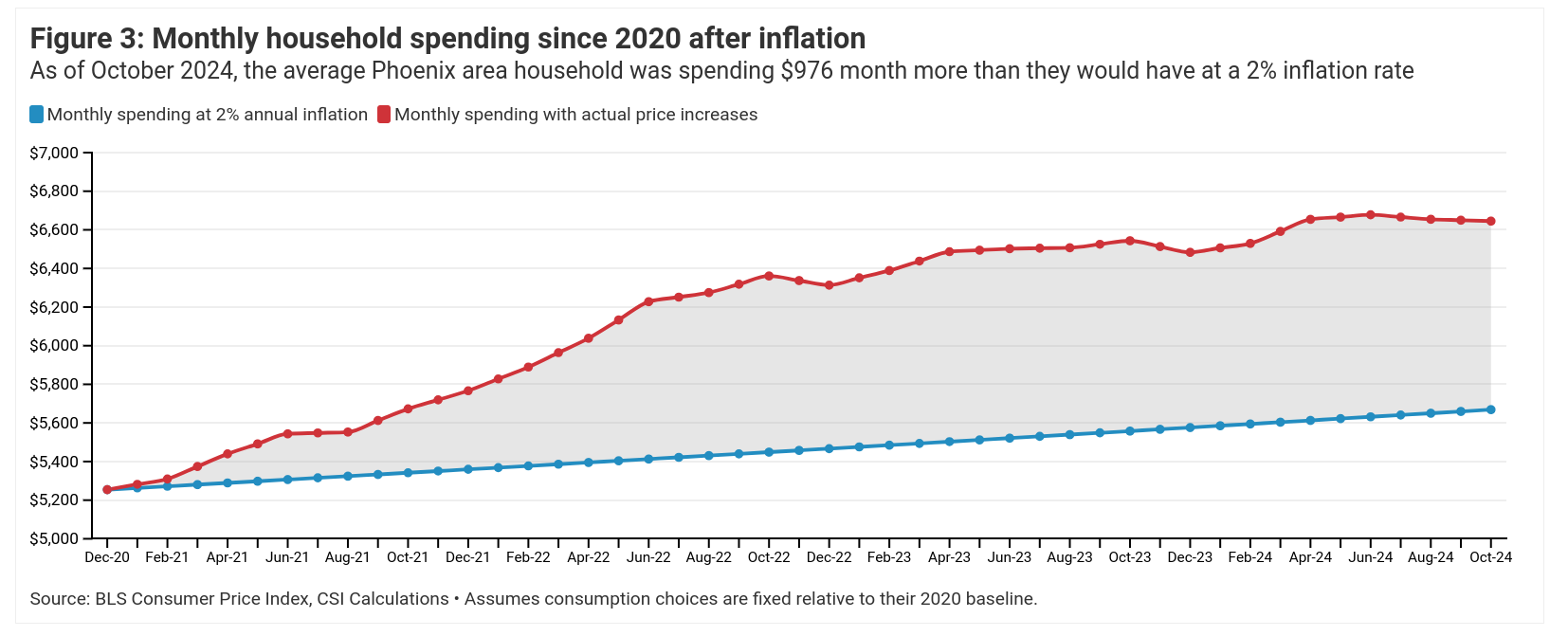 The report also underscored just how much inflation from the past four years has zapped Valley residents’ wallets. If inflation had remained steady at around 2% in Arizona since 2020, the average family would have saved $10,627 on expenses each year, a huge amount for working families.