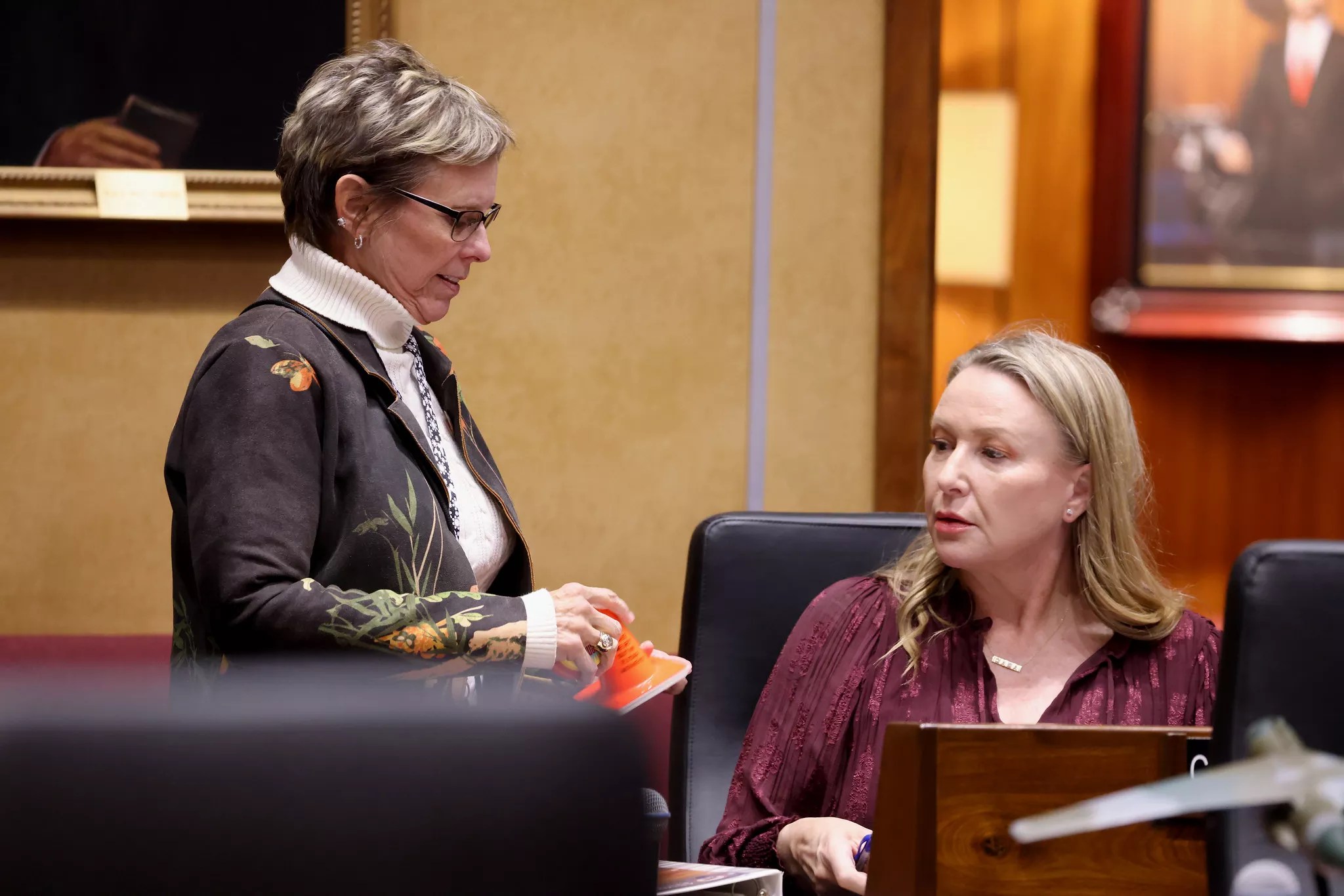 Republican state Sens. Hildy Angius (left) and Carine Werner (right) participated in a Senate hearing to dig into how the system failed murdered Indigenous teen Emily Pike.