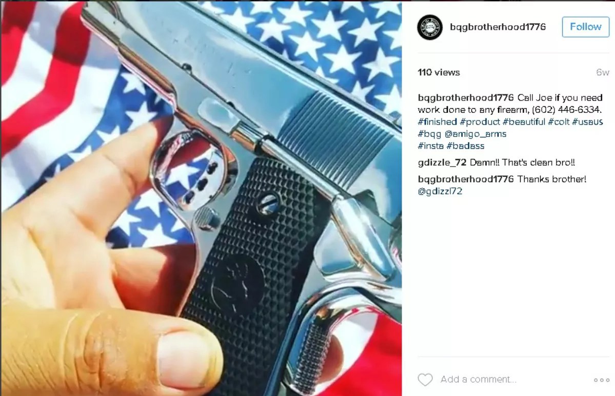 The latter is #BQGHQ ARIZONA, which boasts more than 3,000 members and states in its description that members once were “able to sell firearms personally to other people in AZ” but had been banned from doing so by “the lovely admins of FaceBook.”