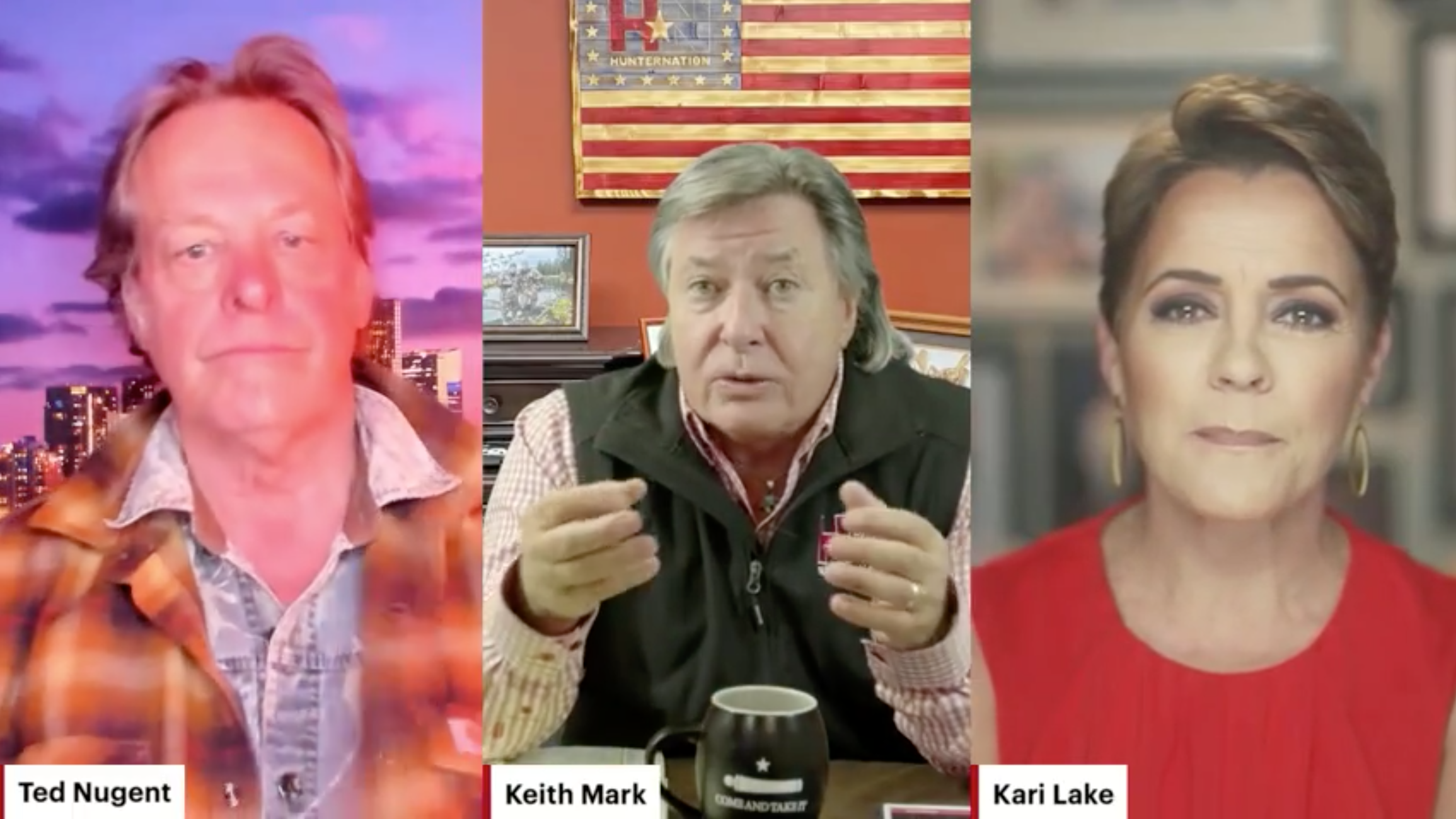 Kari Lake appeared on a Hunter Nation virtual event with Ted Nugent (left) and Keith Mark (center).