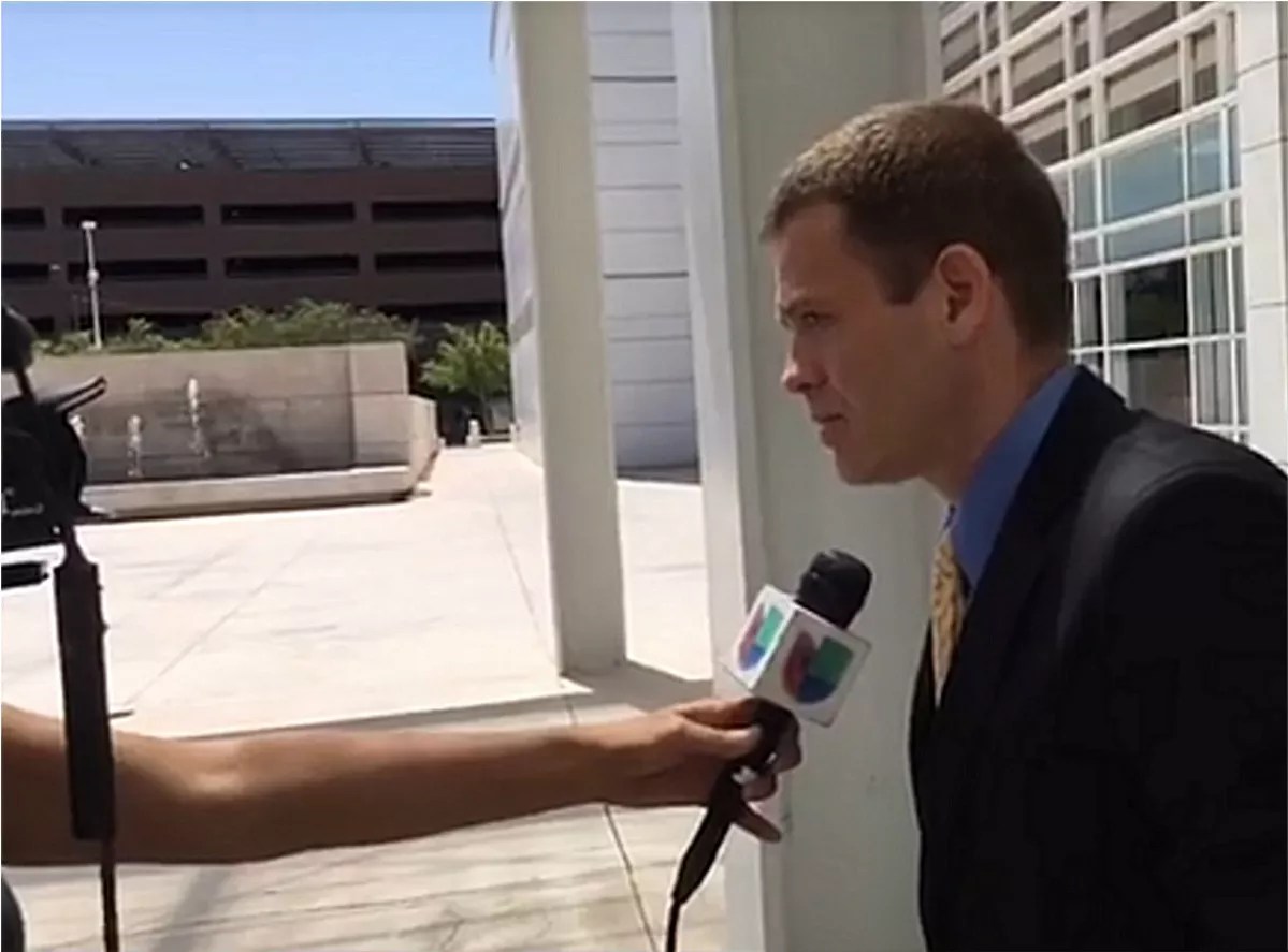 Jack Wilenchik giving an interview in Spanish on Wednesday outside the federal courthouse in downtown Phoenix.