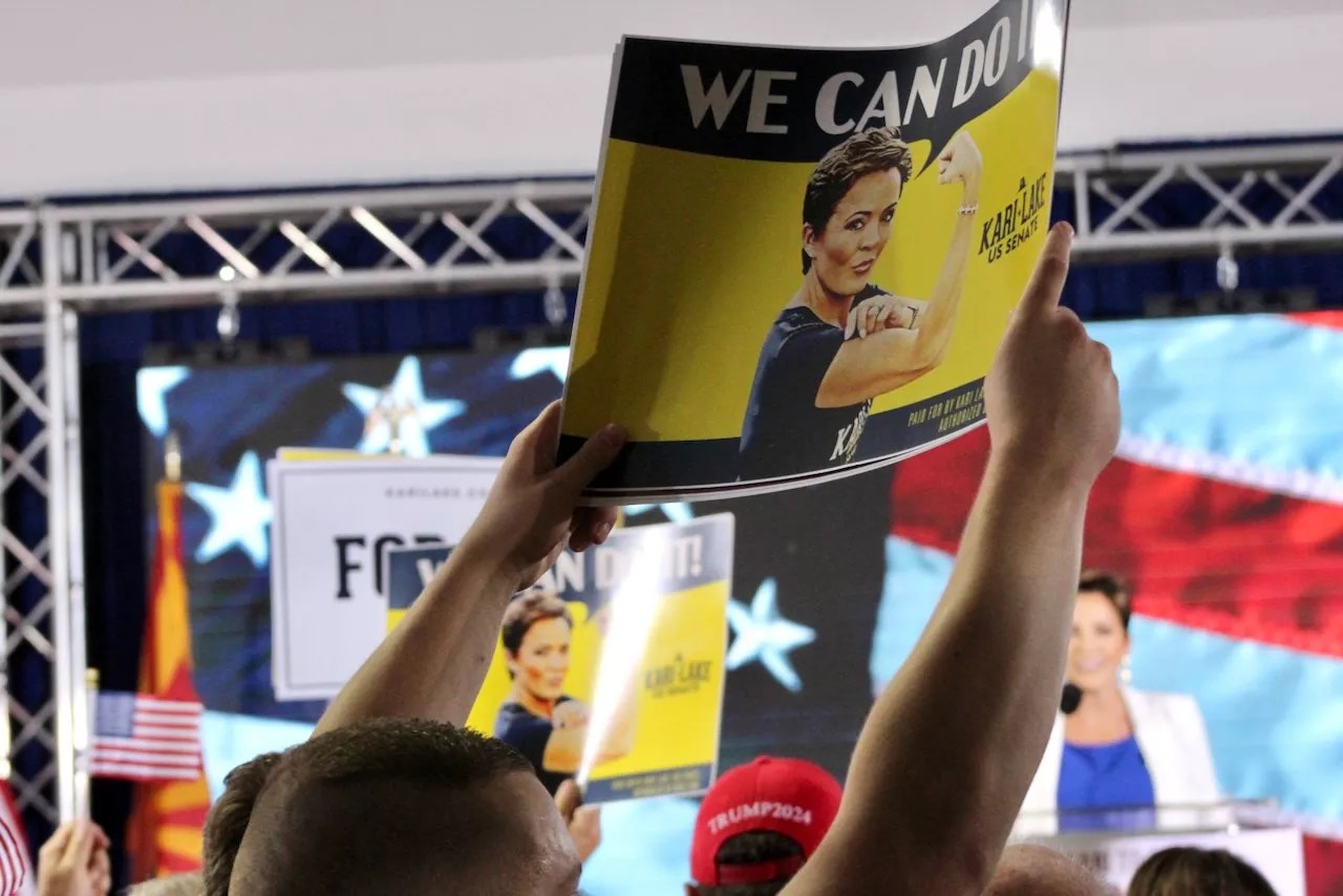 Supporters of Kari Lake carried signs that depicted her as Rosie the Riveter, a cultural icon who represented women working industrial jobs during World War II.