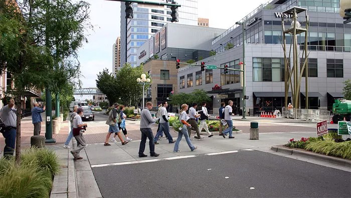Since not many people in Phoenix walk, drivers making a left-hand turn at an intersection, for instance, don’t necessarily anticipate that anyone will be trying to cross the street at the same time. Urban planners have found that it comes down to safety in numbers: The more people are walking or biking, the more drivers will look out for them.