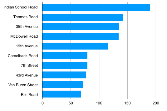 Even in that national context, however, Phoenix stands out. The National Highway Traffic Safety Association recently named Arizona the deadliest state for pedestrians — a statistic based on data from the first six months of 2017. And in 2016, NHTSA found that Phoenix had the highest per-capita pedestrian fatality rate among major American cities.