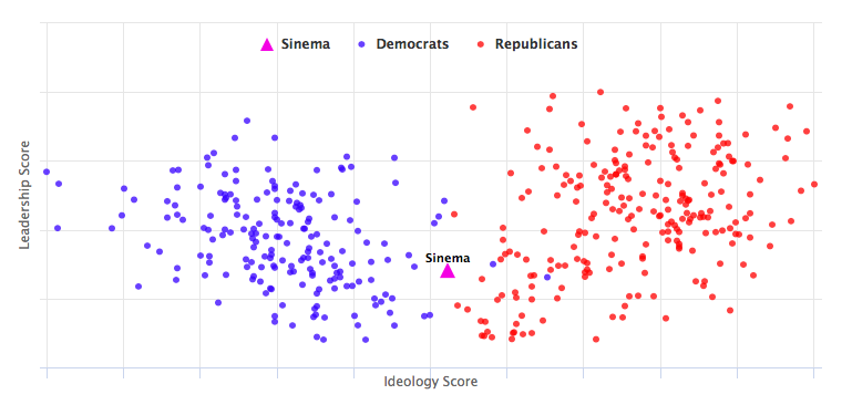 GovTrack's analysis of Sinema's votes puts her squarely in the center.