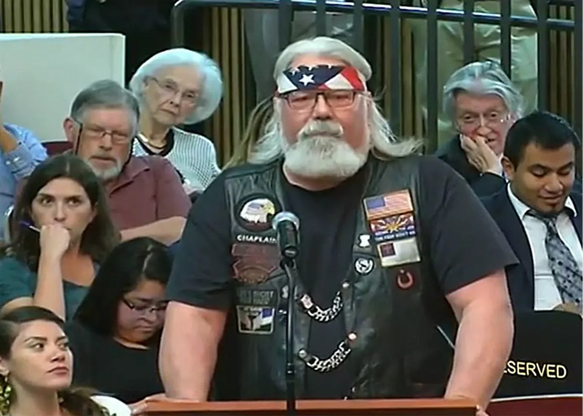 On the anti-undocumented side, and against Phoenix becoming a sanctuary city, were familiar faces like right-wing activist Anna Gaines, Tim Rafferty of the anti-immigrant biker group Riders USA, and burly, white-bearded nativist Jim Williams.