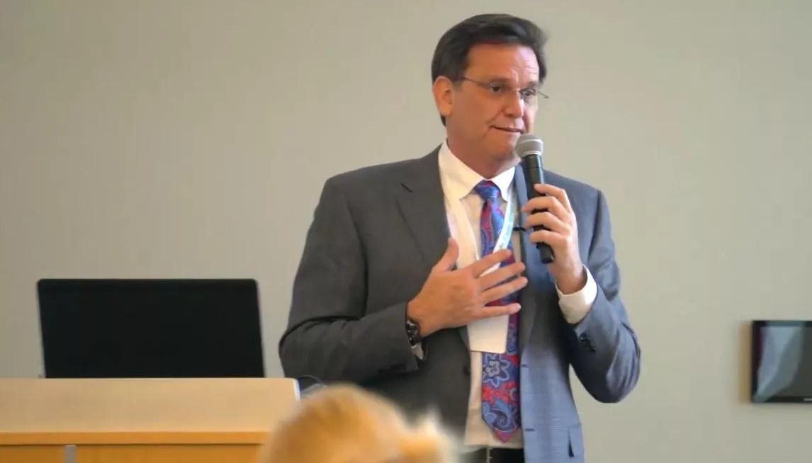 Robert Maynard pitches SurchX to a group of potential investors in June 2019.