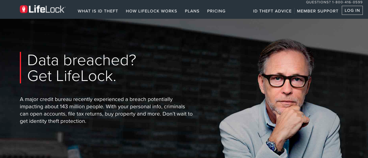 LifeLock is capitalizing on the Equifax hack with a message on the company’s homepage.