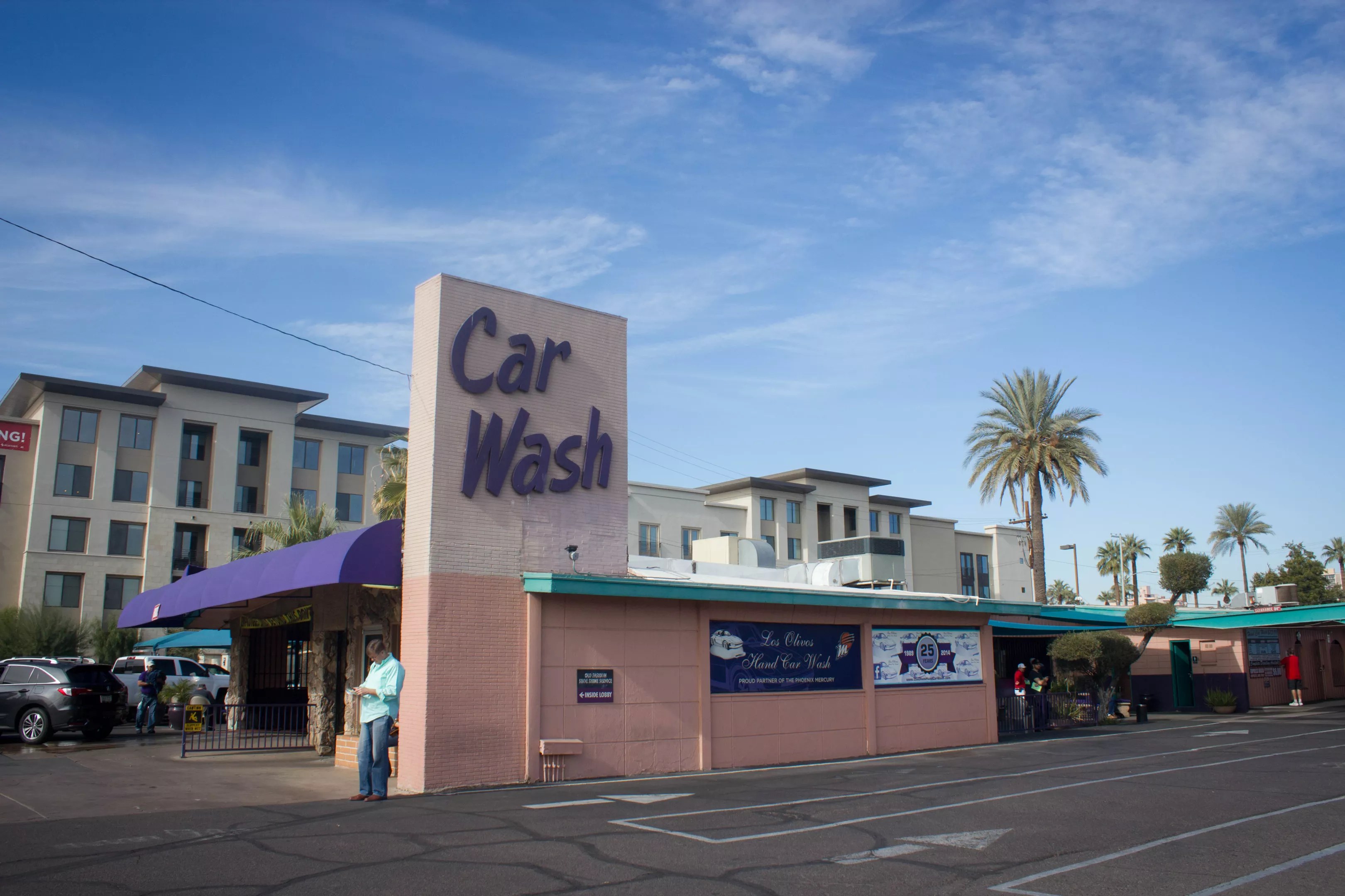 On Wednesday afternoon, anyone hoping to get their car cleaned at Los Olivos Hand Car Wash was looking at an hour to an hour-and-a-half wait. Cars circled the building; the pickup area looked like a parking lot. Longtime customers sat under the teal awnings with crossword puzzles and James Patterson novels, figuring it was worth the wait to get in one last car wash before Los Olivos closes for good this week.