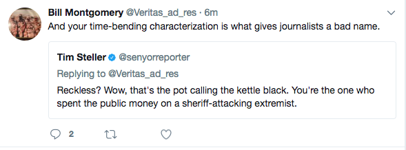 So how does Bill Montgomery feel about this news? His office has a standing policy that it doesn’t comment to Phoenix New Times, but he appears to be on the defensive, after spending six hours on Friday getting into Twitter fights with reporters.