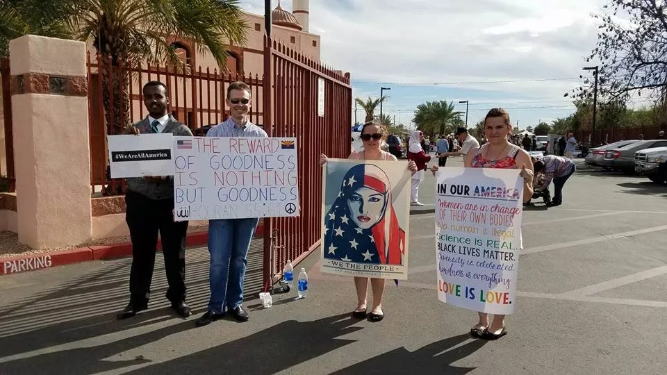She chose to collaborate with the Islamic Community Center of Phoenix, which hosted the rally, because her church, Trinity Mennonite in Glendale, had formed a relationship with the mosque back in 2015 when it started receiving threatening letters and became the site of armed anti-Muslim protests.