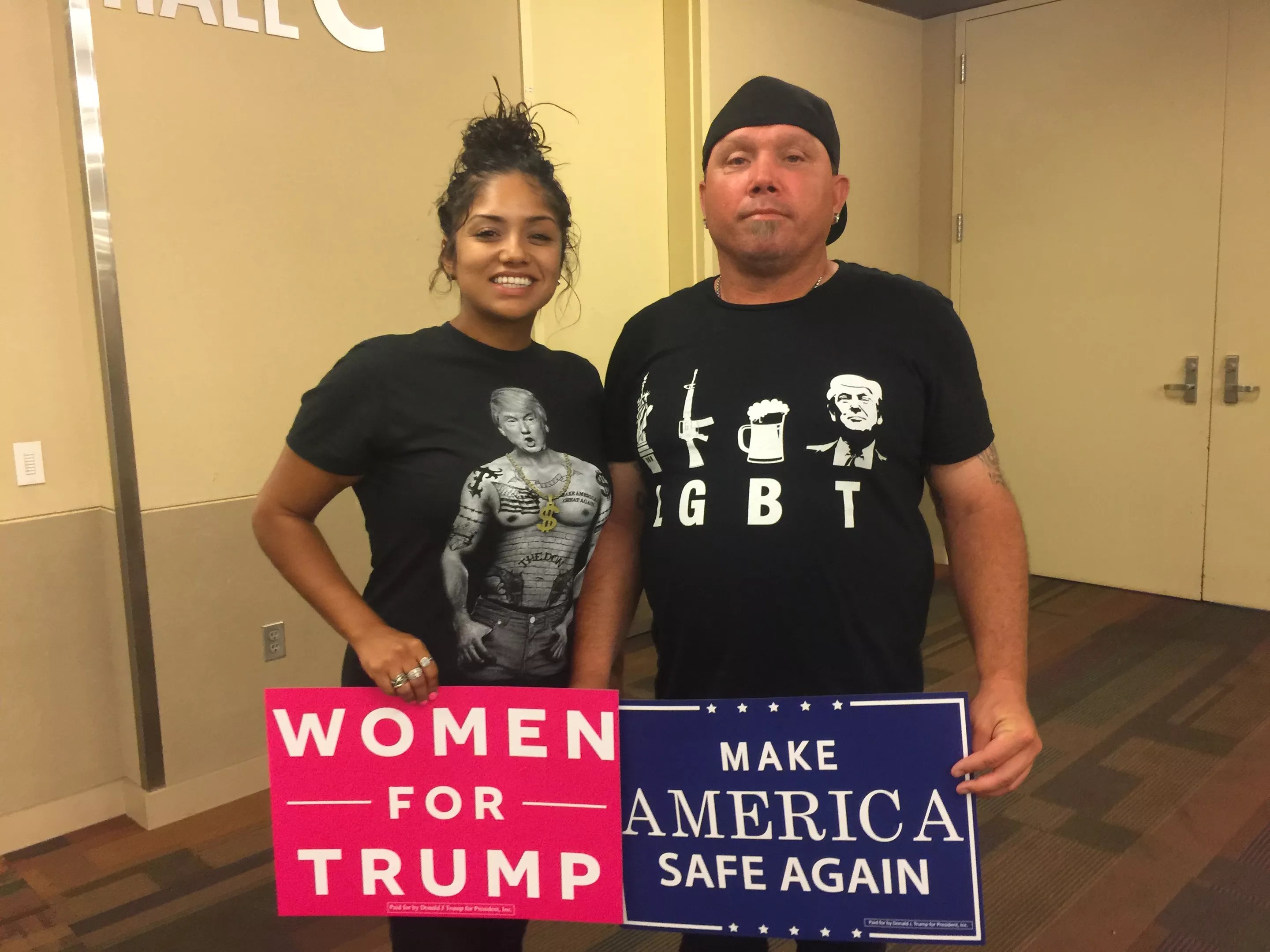 It was actually my idea to come – I made my dad take the day off work and come with me. I went to the last one by myself, but I was a little nervous that it was going to be crazy tonight, so I wanted to have my dad here. He’s a firefighter. I just like that [Trump] wasn’t in politics before, so I feel like he’s less corrupt and no one can really buy him off. I liked what he said about Joe Arpaio tonight. I really like Joe Arpaio – I don’t think was racist, I think he was doing his job.