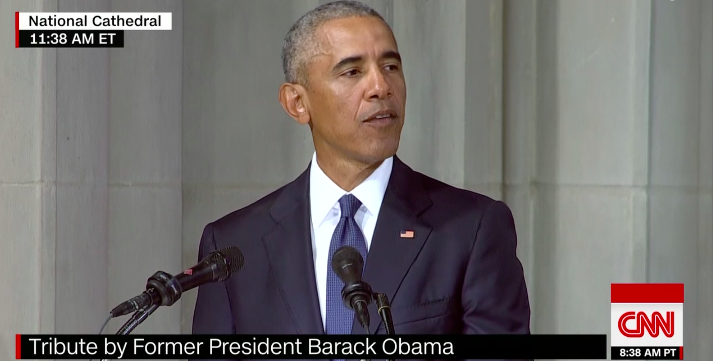 Former presidents and political rivals Barack Obama and George W. Bush spoke at the service honoring the late Senator John McCain on Saturday at the National Cathedral.