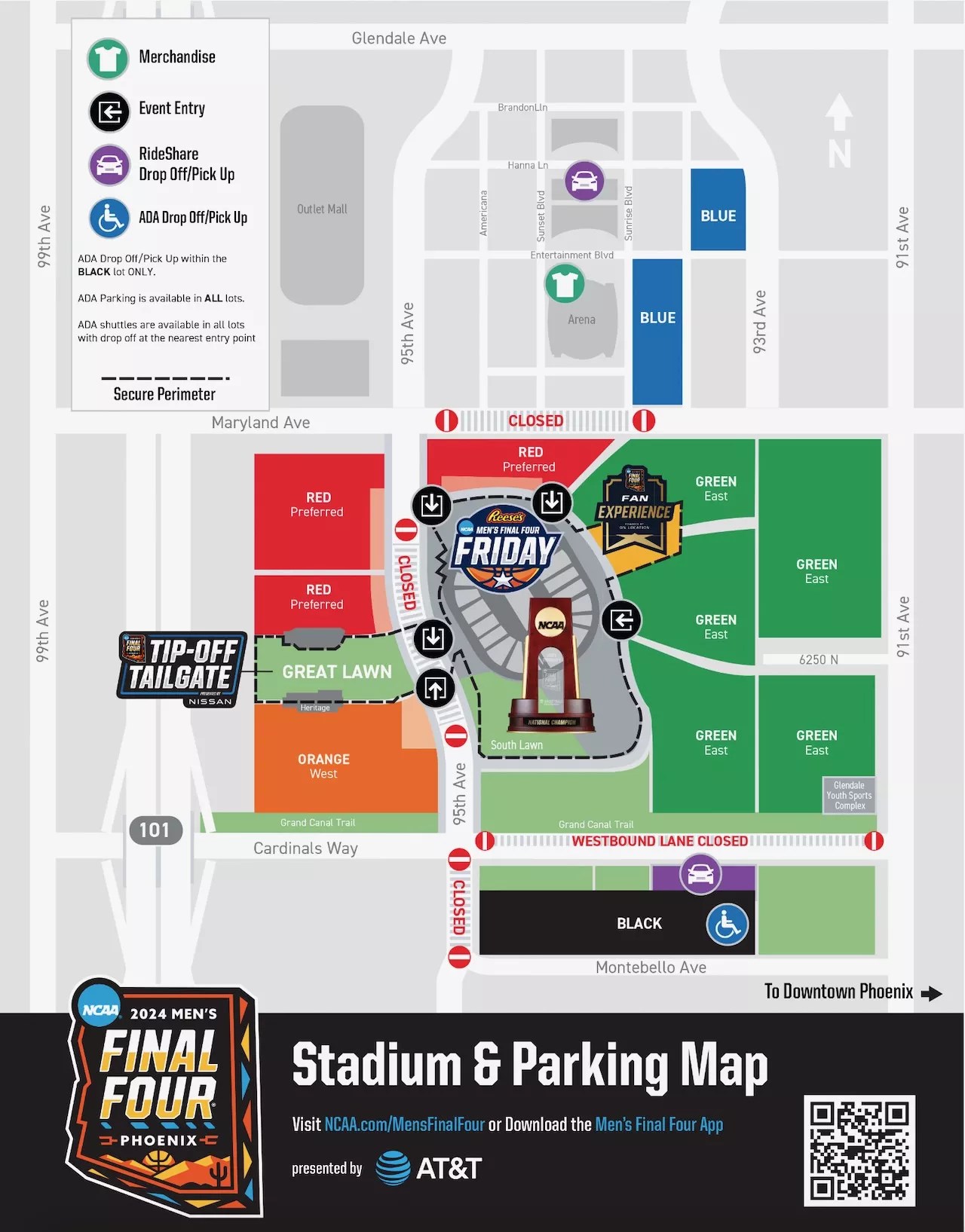 Final Four organizers advise people heading to events at State Farm Stadium to purchase parking online in advance.