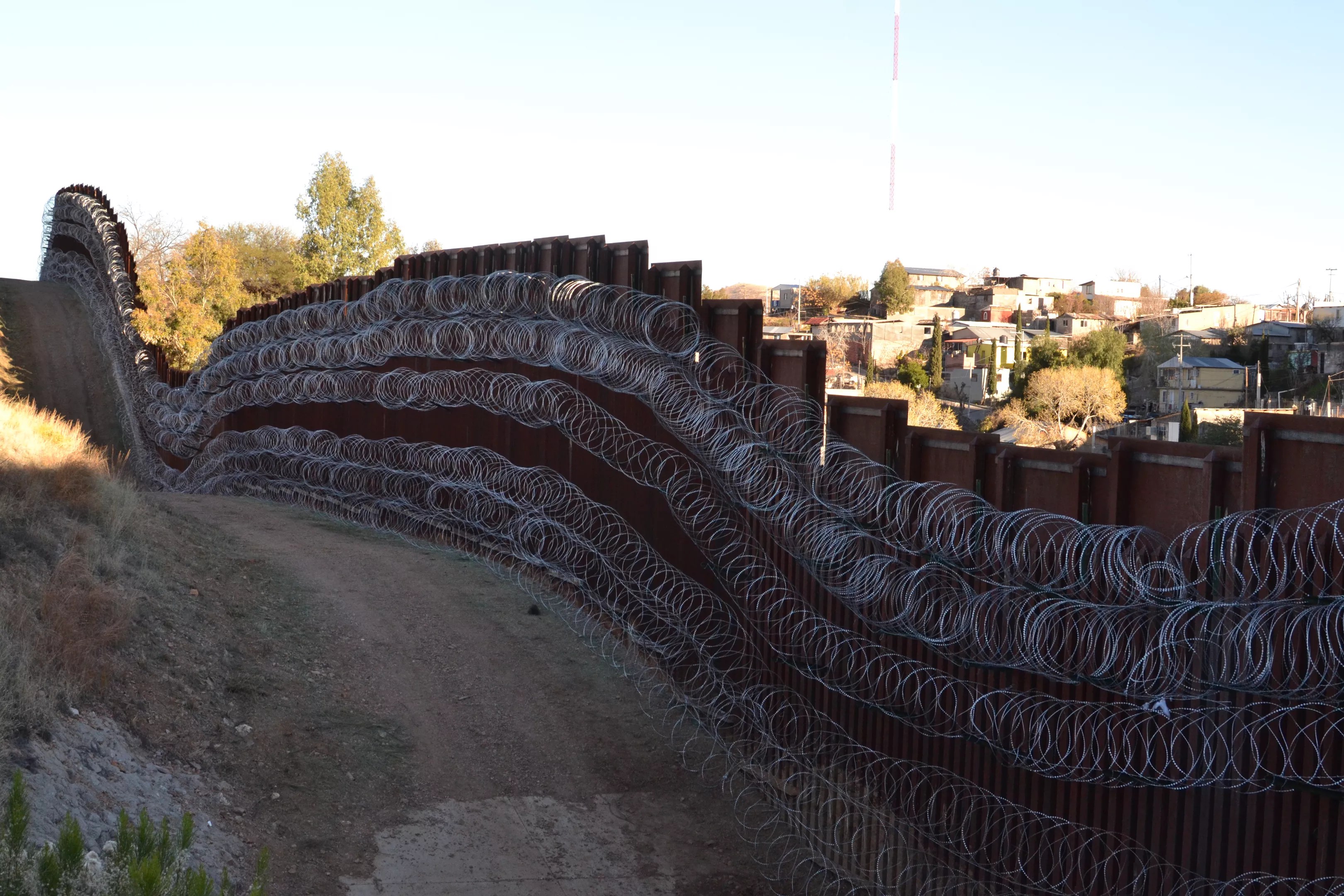 Gonzalez, who has lived in Nogales for 45 years, installed a gate on his property to keep migrants from running through, but it’s been a while since he’s seen anyone jump. He doesn’t believe the wire will keep people from crossing. They’ll find other ways to get through, Gonzalez says. Determined jumpers will just use wire-cutters.