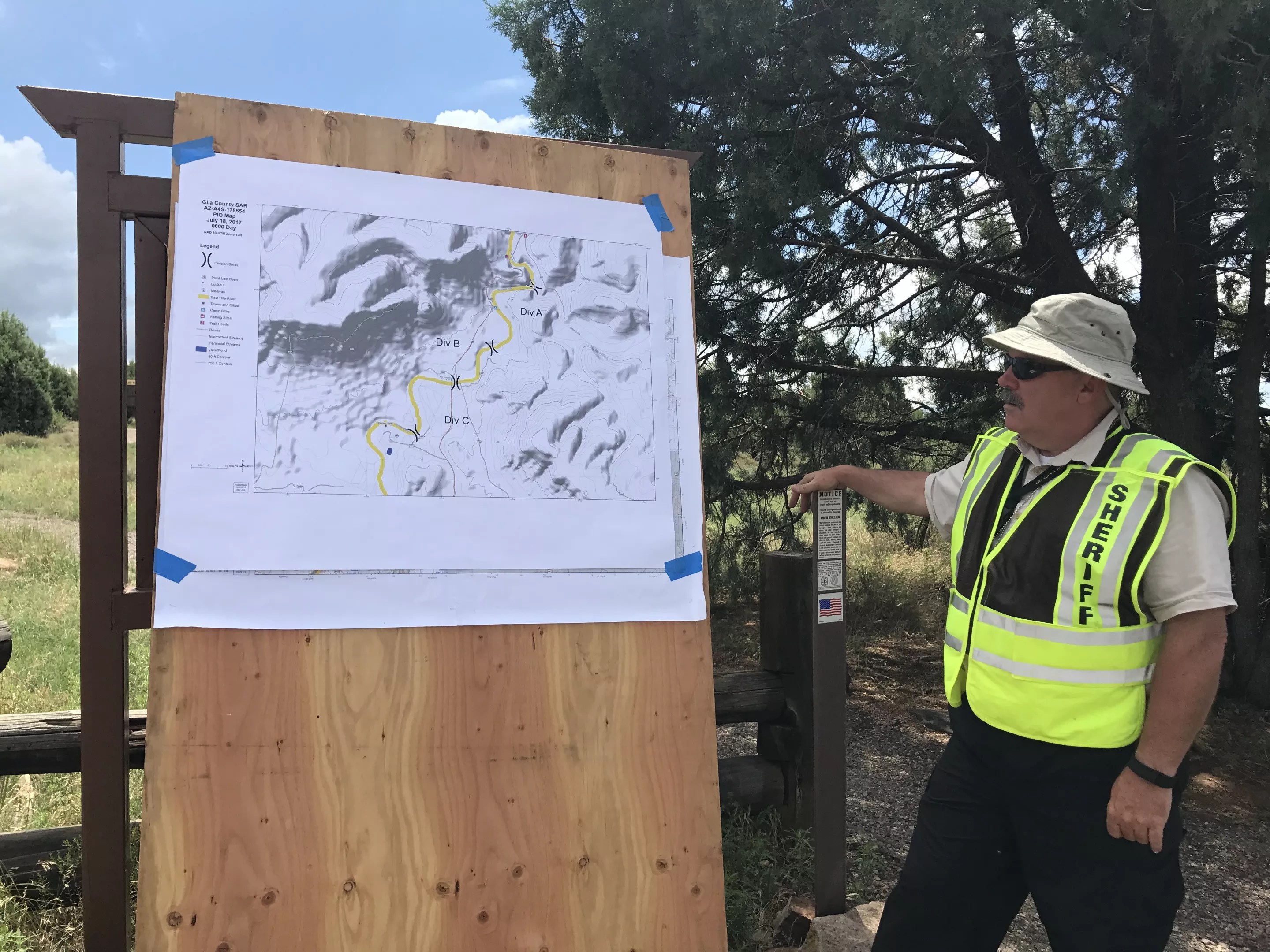 Sergeant David Hornung explains the increase of search and rescue teams on Tuesday. The teams doubled from 35 to 70 with six K-9 units. They split up into three sections along the East Verde River.