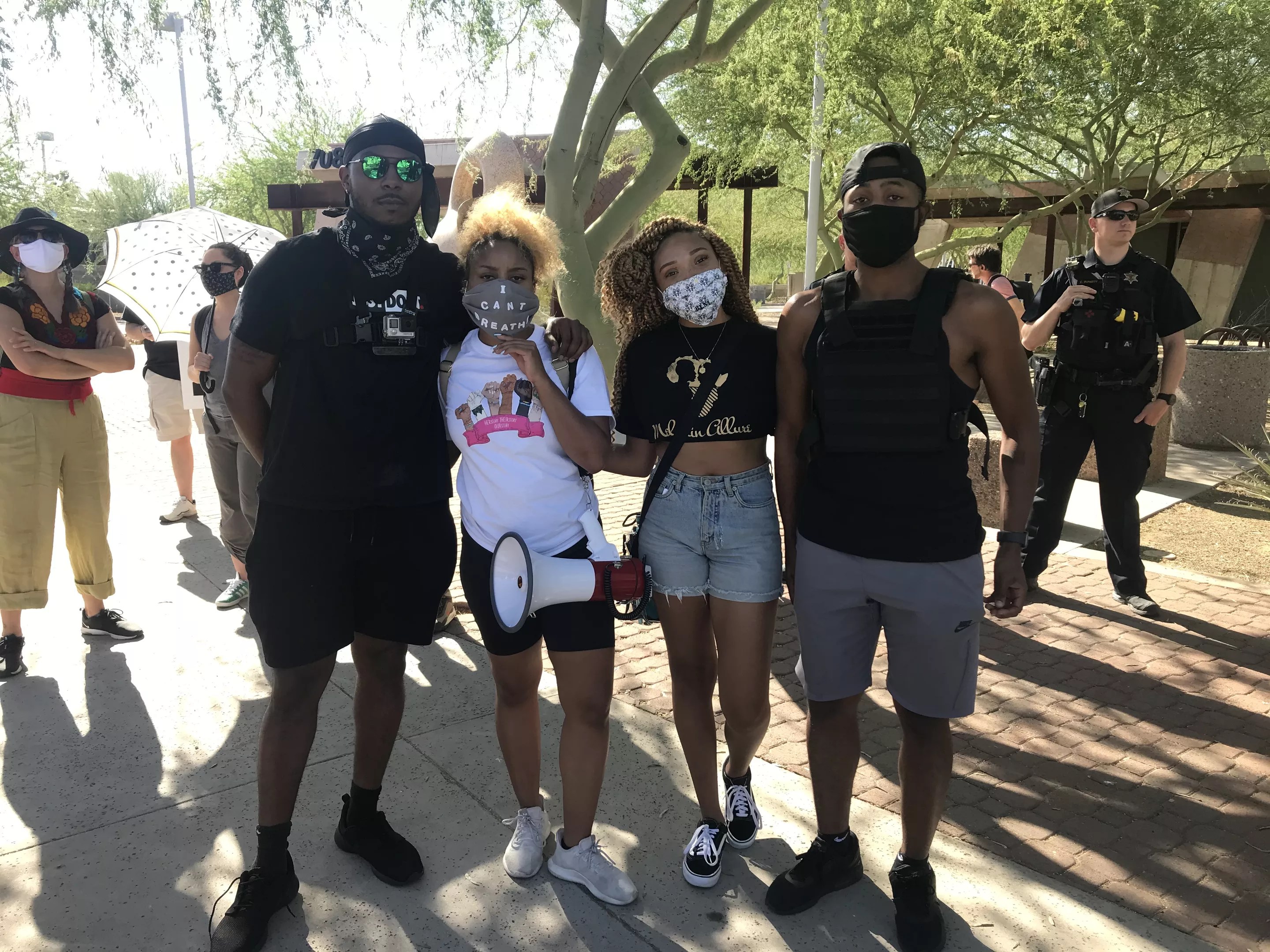 Marchers congregated on a plaza near the Museum of the West, where Armonee Jackson of Mesa talked about how she’d organized the march earlier in the week, coordinating the route with the Scottsdale Police Department and spreading the word using her Twitter account. Jackson serves as the NAACP state president for Arizona, and she hopes marches around the Valley can help accomplish some very specific goals.