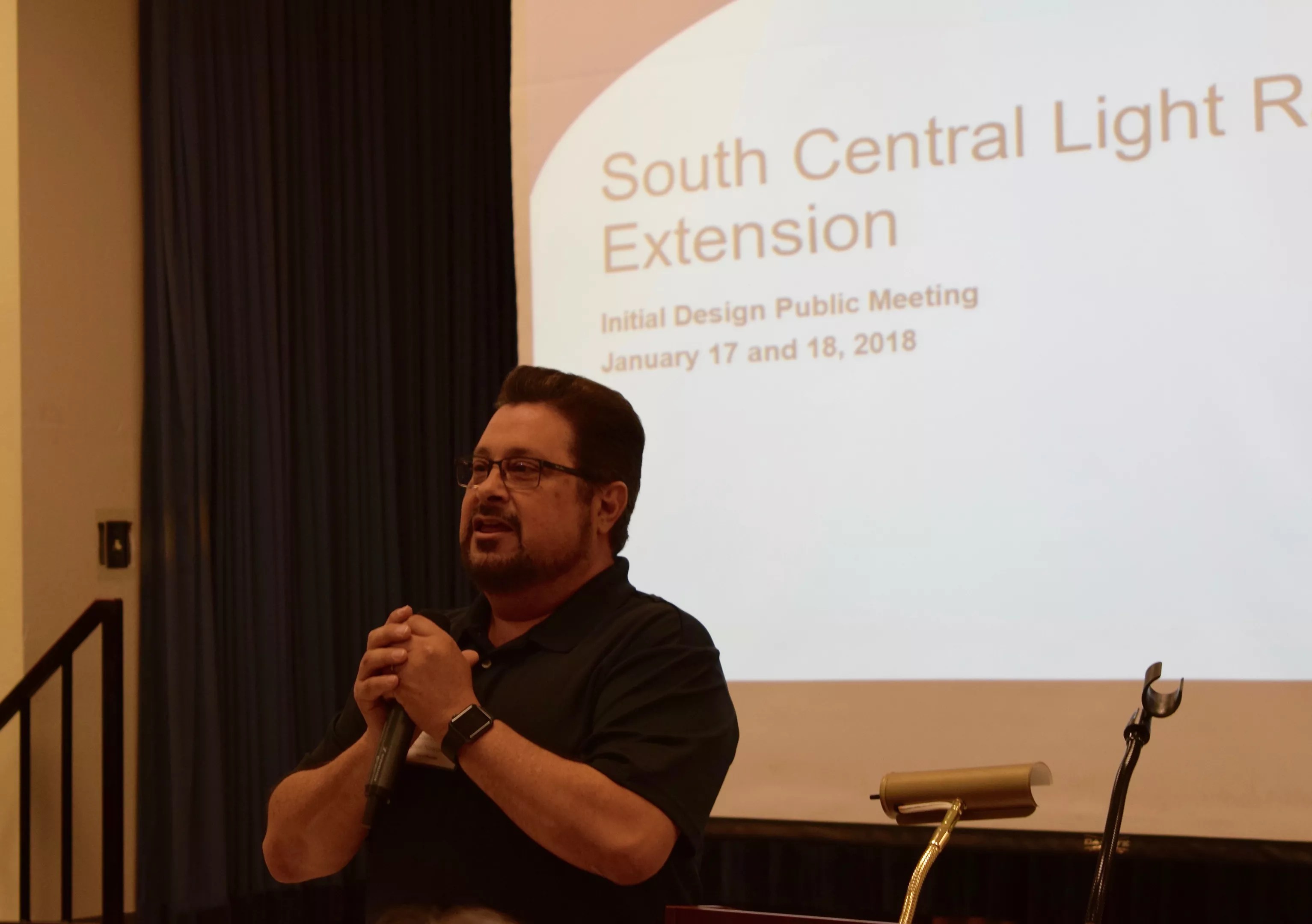 Phoenix City Councilman Michael Nowakowski at a January meeting on the South Central light rail extension.