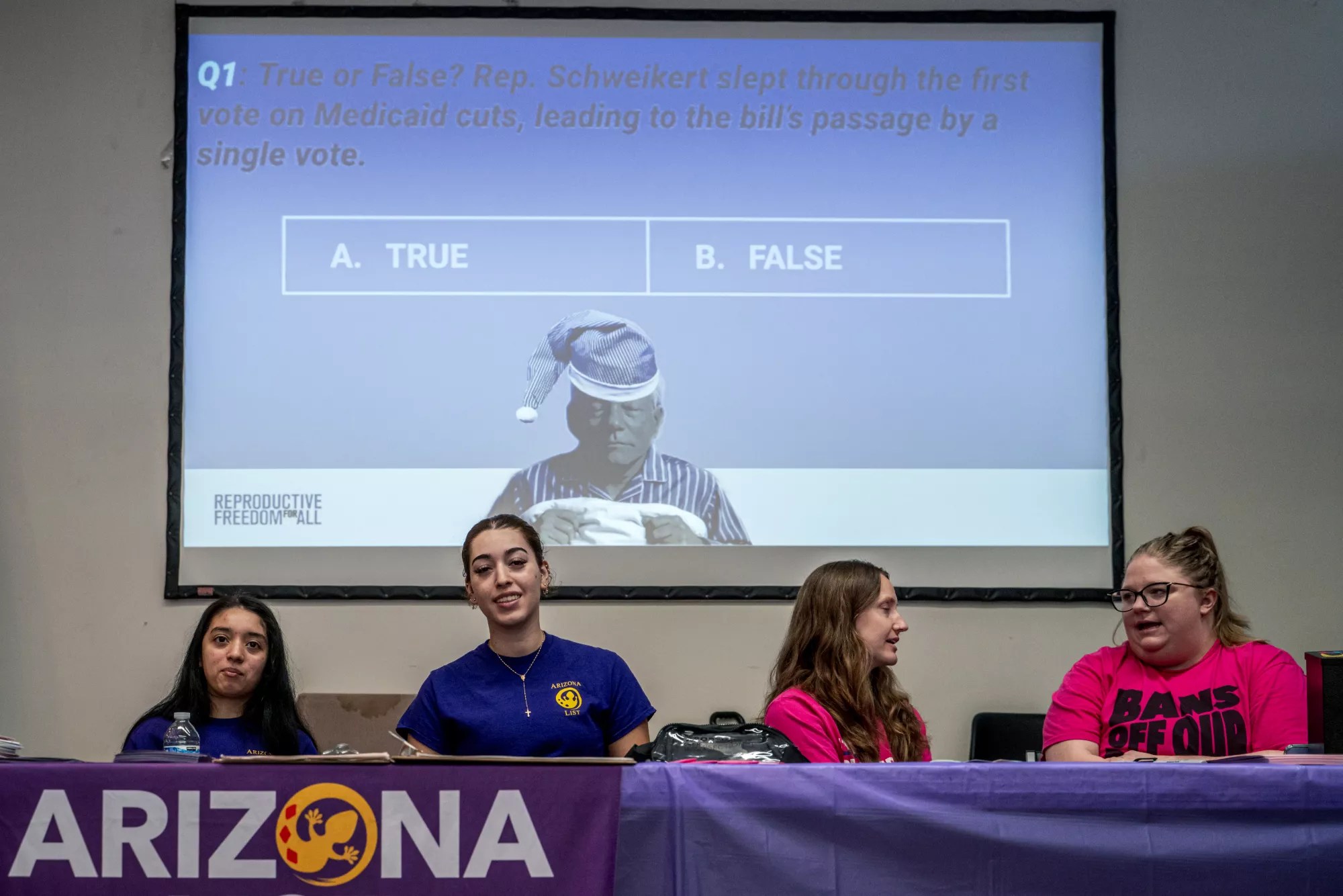 The bill is projected to have widespread negative effects for many Americans – notably, more than 300,000 Arizonans could lose their Medicaid health coverage. Organized by Athena Salman of the Arizona chapter of Reproductive Freedom for All, Saturday morning’s “Sleepy Schweikert Snoozefest” aimed to put pressure on Schweikert and bring attention to the harm the bill will cause.