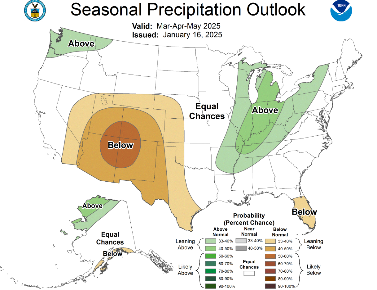 “Odds favor warmer than normal temperatures and below normal precipitation for that three-month period,” Jamison said. “That doesn’t mean it’s the only possible outcome, but it’s the more likely one we take.”