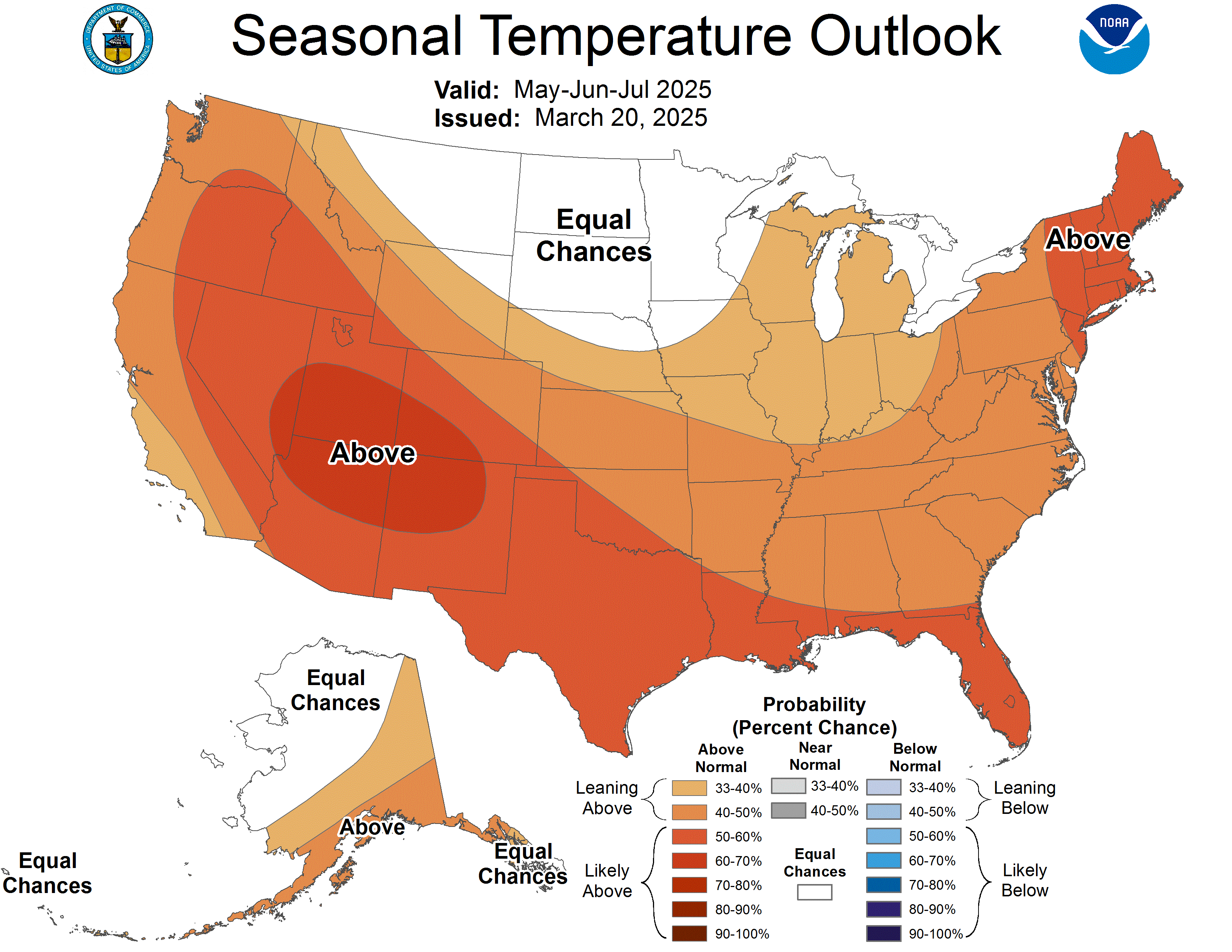 According to the NWS’s Climate Prediction Center, Phoenix temperatures are expected to be above normal this year. There are average rain chances at the beginning of summer, with May and June typically being the driest months for the city. When monsoon season begins toward mid-summer, the chances of rain increase to above normal.