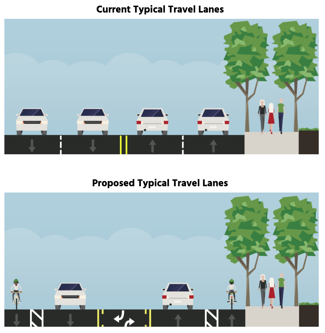 Carl Langford, a traffic operations engineering supervisor with the Street Transportation Department, cited research showing that similar projects, also known as “road diets,” reduce collisions and crashes.