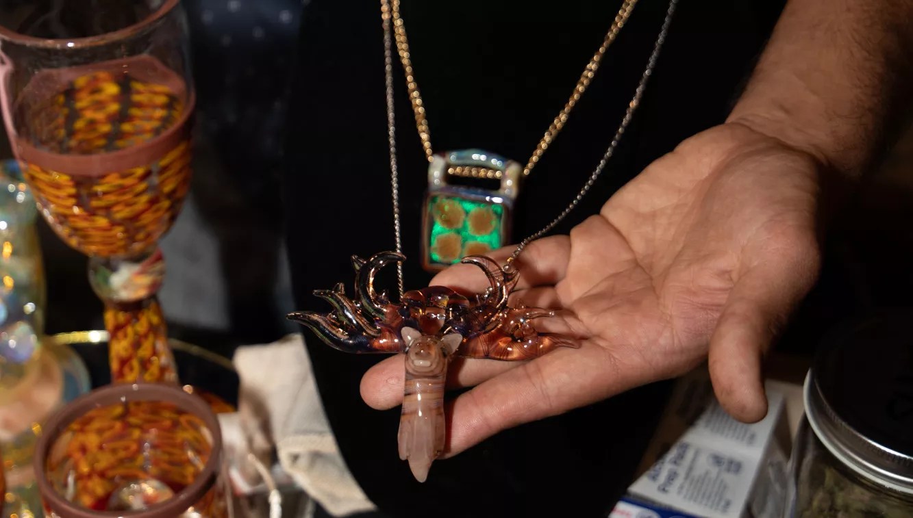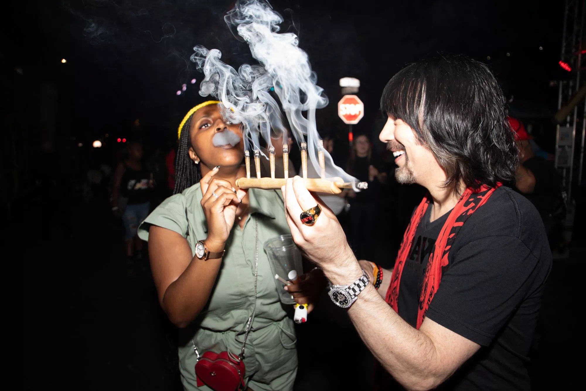 Or you could take a hit from weed influencer Josh Kesselman’s flute pipe. Many waited their turn to do just that.