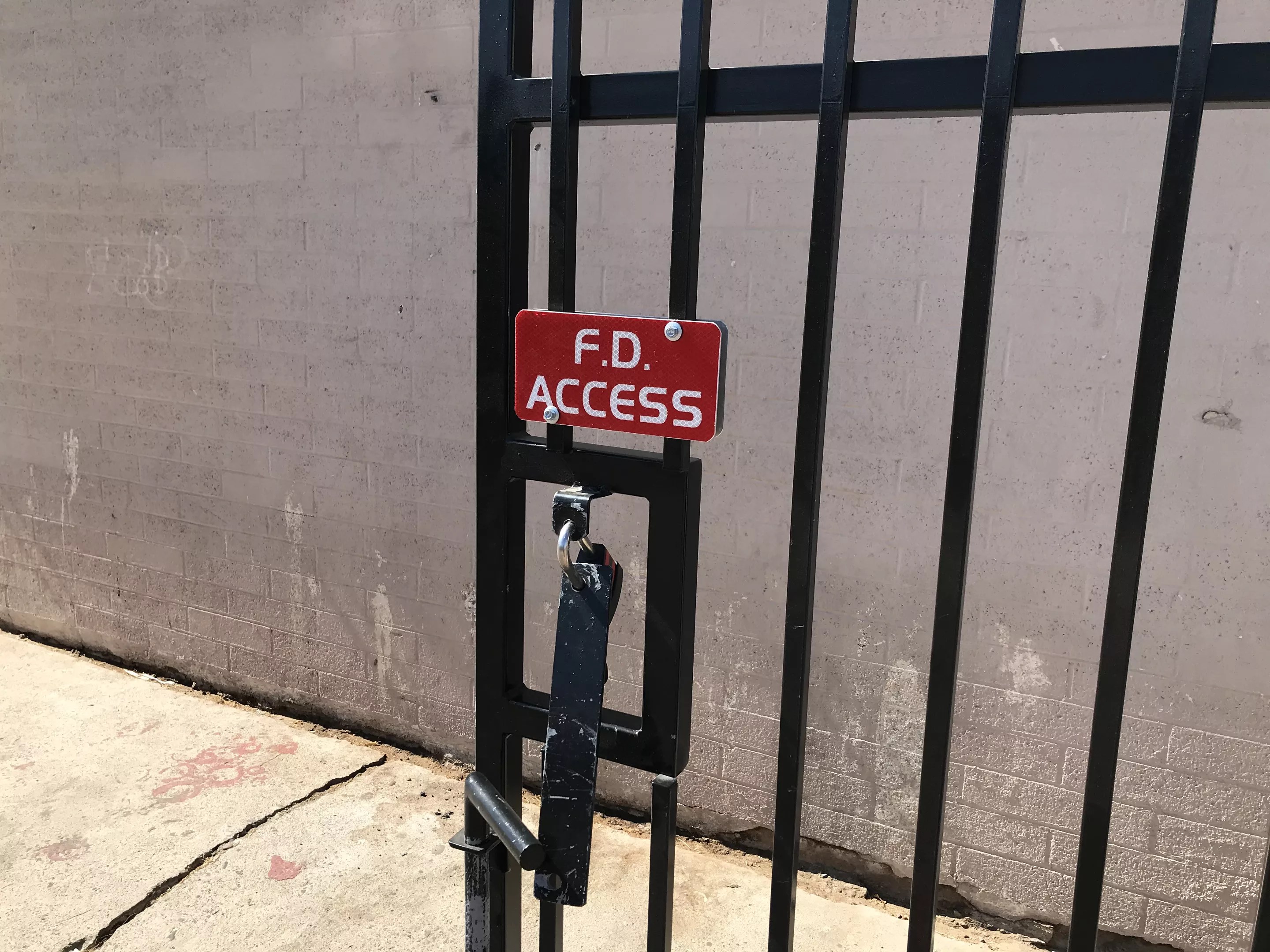 Six feet tall and 20 feet across, the gates themselves are already up. Made of thin, black-painted metal bars with spiked tops, they sit across the entrances to the two consecutive blocks of alleys running from South Ninth Avenue to South 11th Avenue between West Jefferson Street and West Madison Street. On one end sits the lots put aside for people living on the streets to camp in. They’re secured by two heavy-duty padlocks: one for residents and one for fire department access.