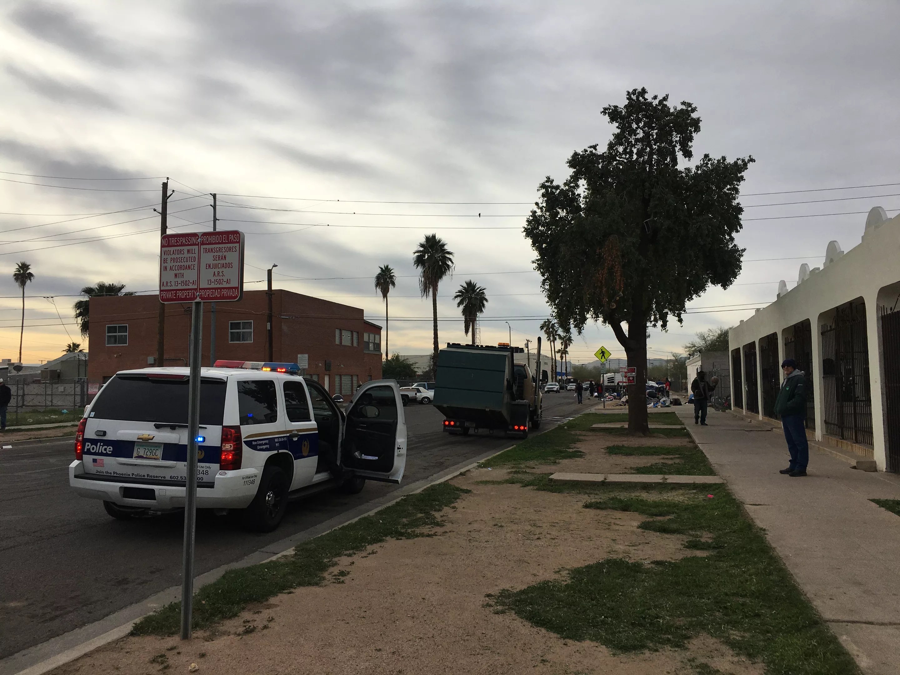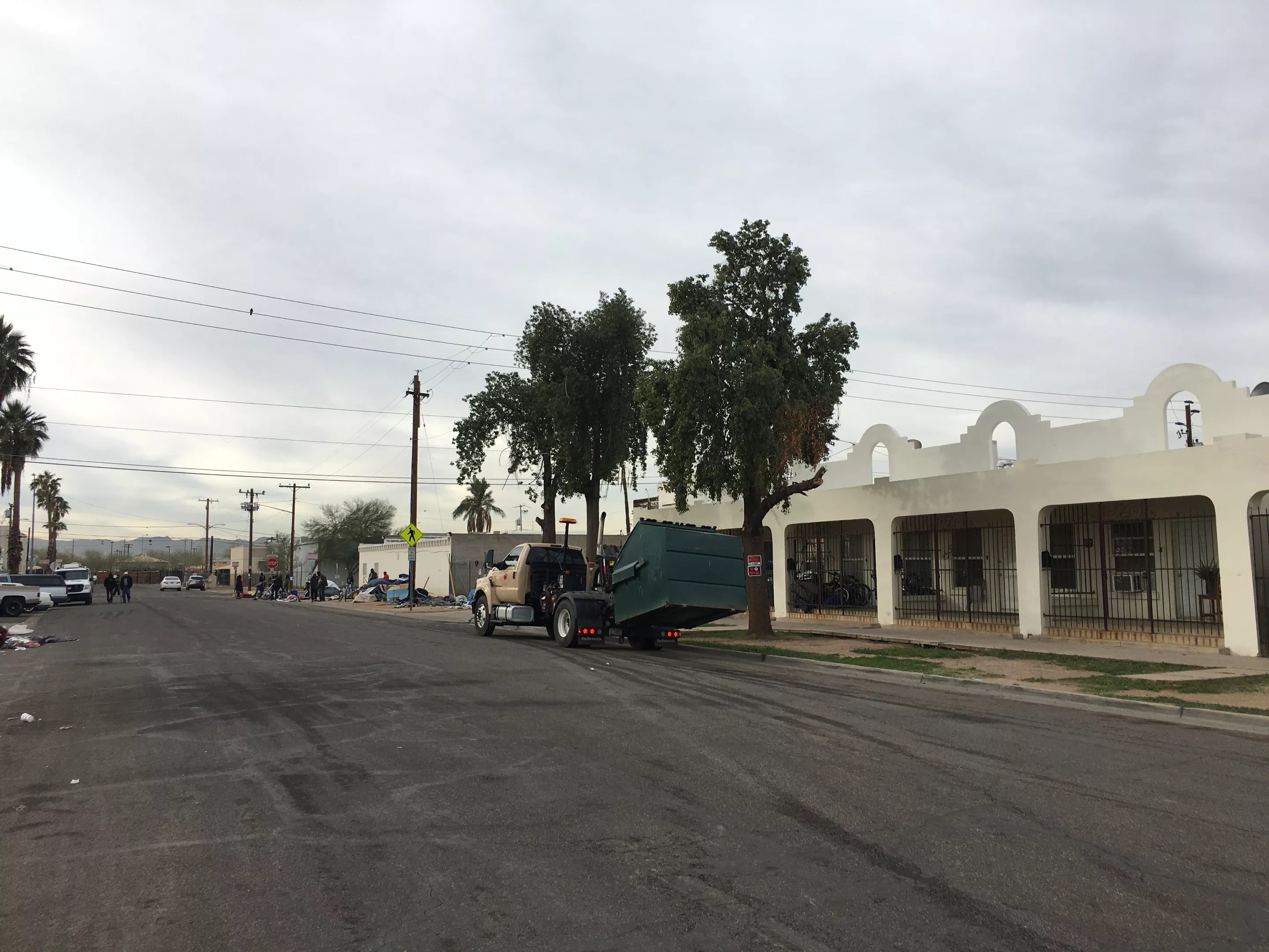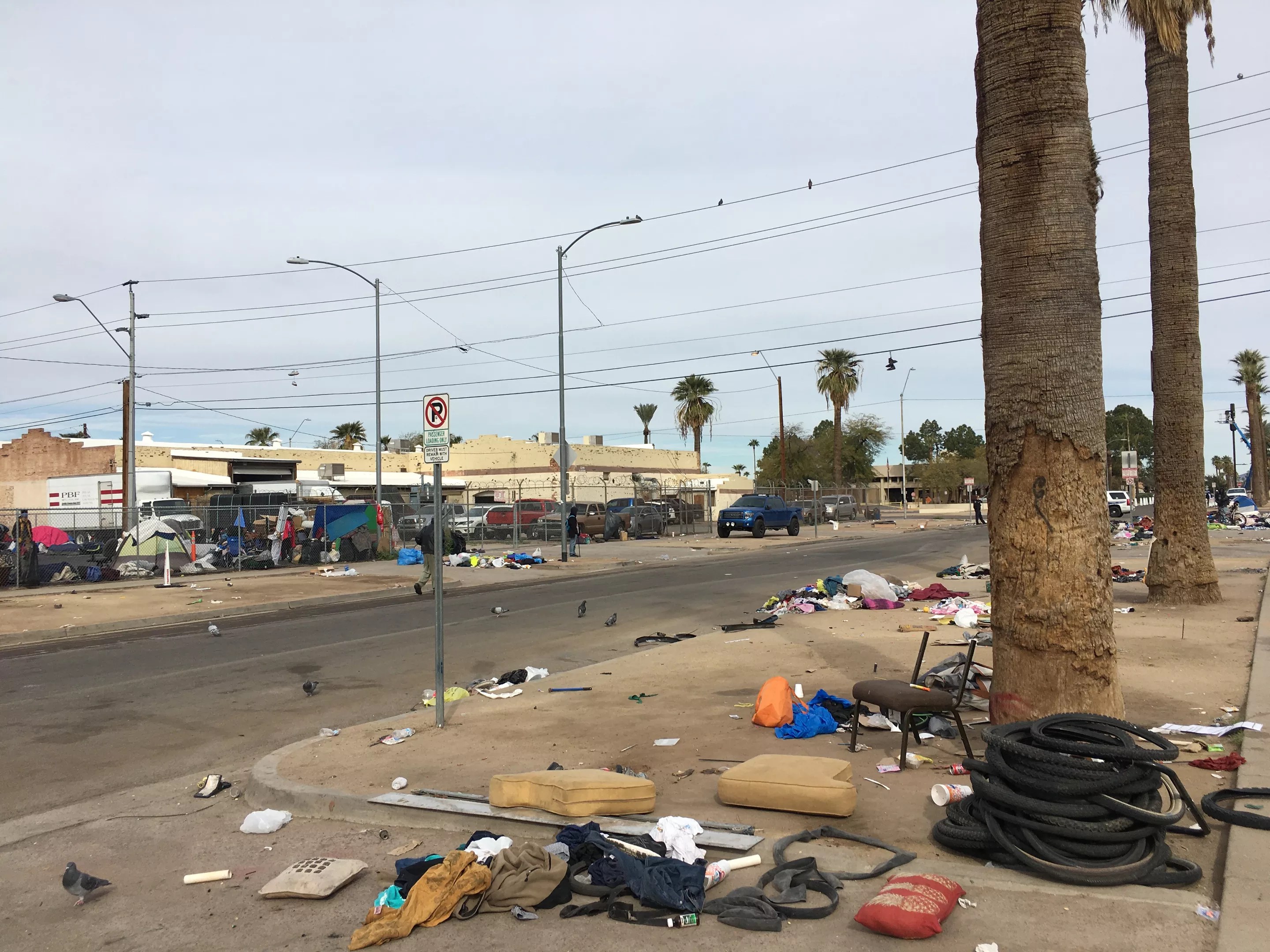 The hundreds of people who camp and sleep in that area, in the shadow of Phoenix’s largest, consistently full homeless shelter, have come to expect weekly cleanings. This Wednesday, though, was different.