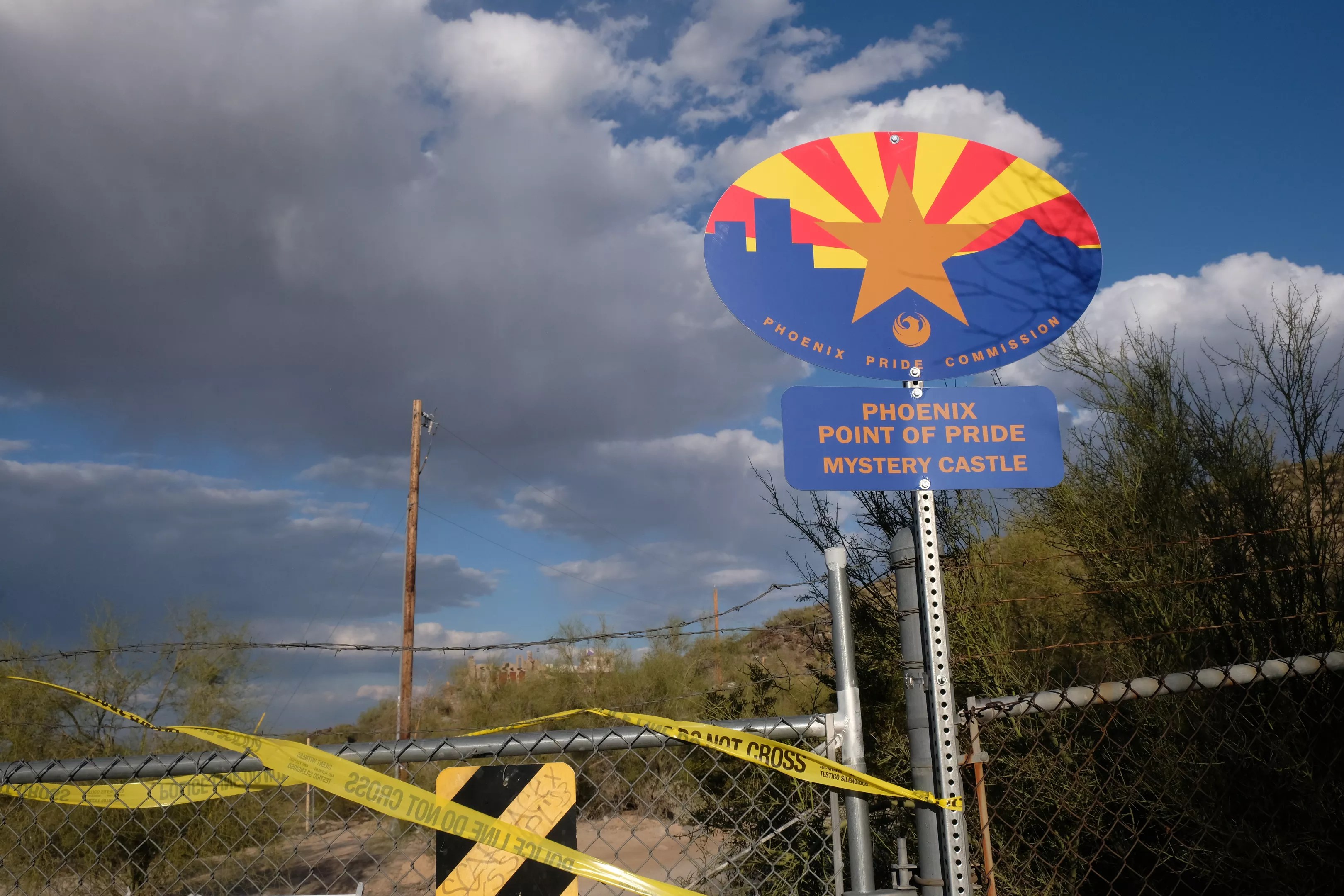 On Monday afternoon, yellow police tape still lined the padlocked gates at the Mystery Castle’s entrance. From the road, little activity could be seen at the old building. Some children were hanging around the gates, speculating on how the vandals had managed to get inside.