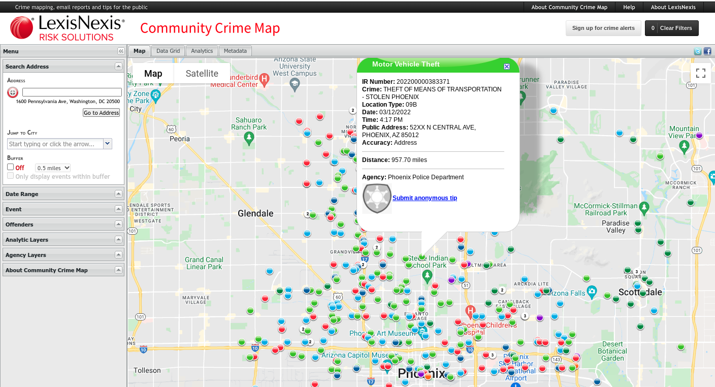 The city of Phoenix community crime map is a tool that helps residents report tips in an effort to solve crimes.