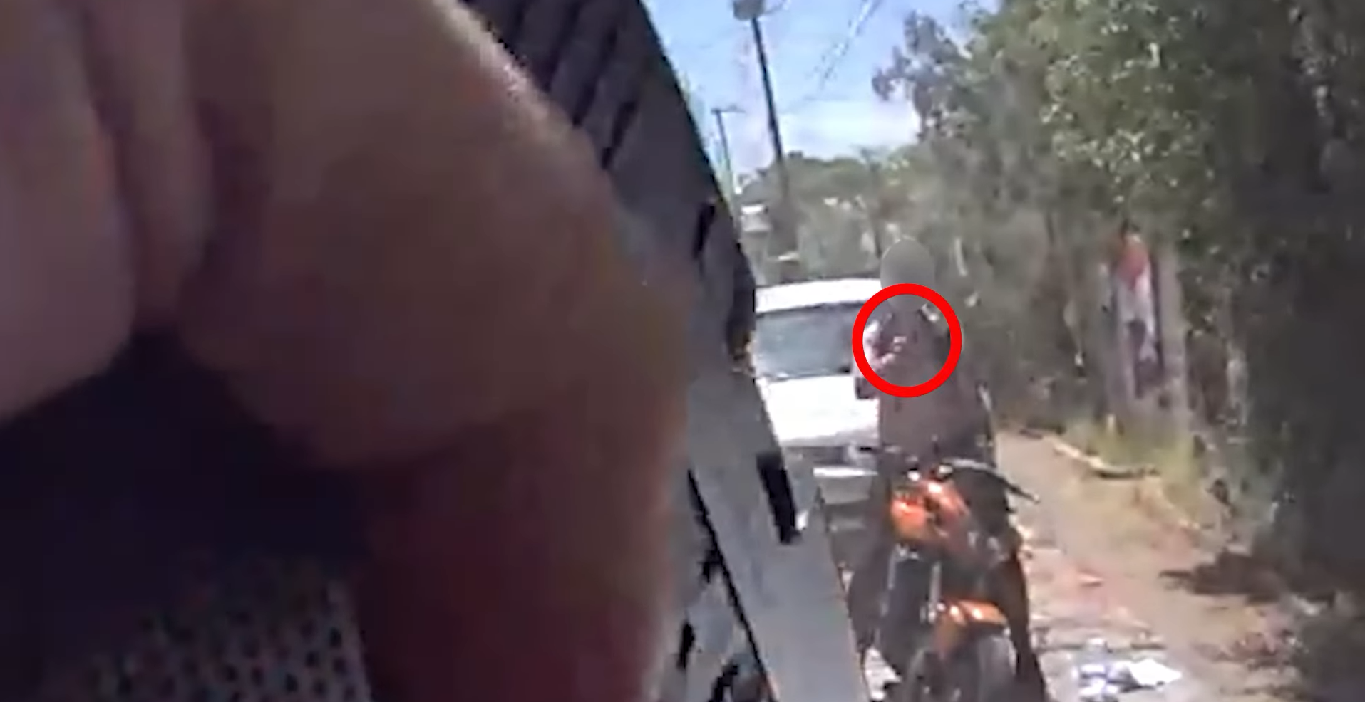 Body-cam footage then showed O’Hayer moving closer to the car door as Main tumbled from the motorcycle onto the ground. At that point, O’Hayer successfully activated his camera, and audio began to record, though no further footage from his camera was included in the briefing.