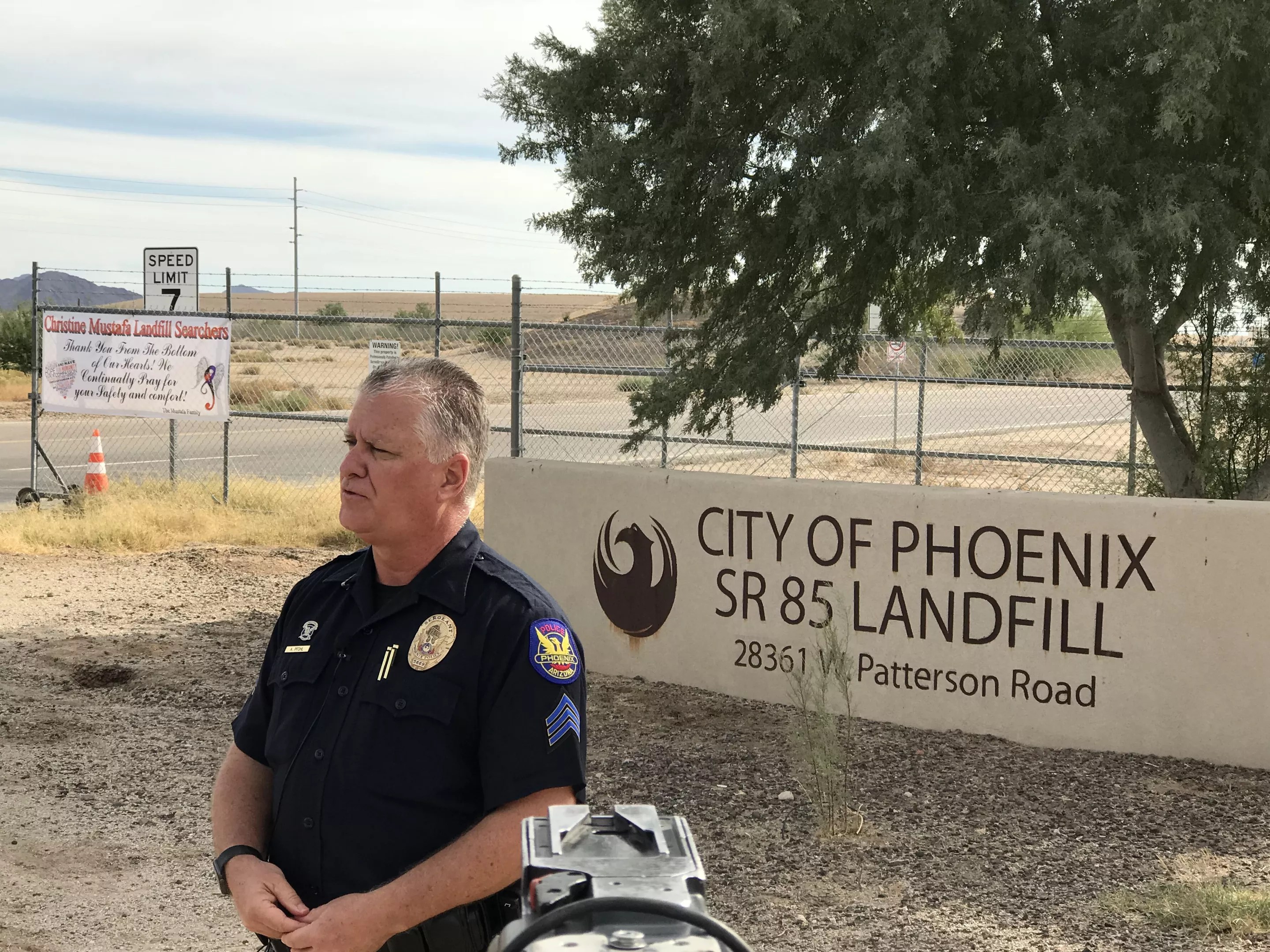 Phoenix Police Sgt. Alan Pfohl explains the details of the two-week-old search for missing Christine Mustafa at the city’s landfill near Gila Bend on Friday, November 3, 2017.