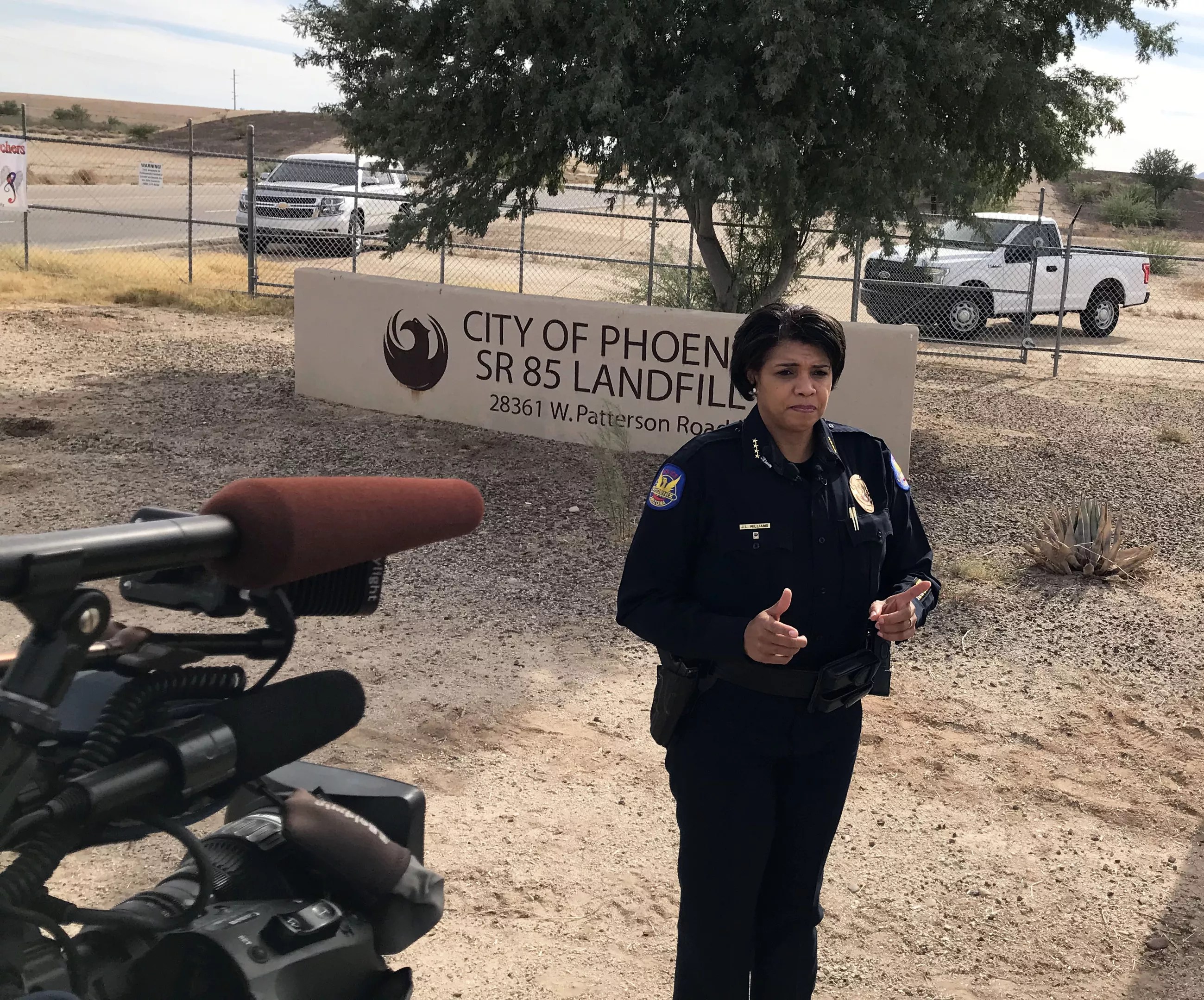 Phoenix Police Chief Jeri Williams praises volunteers in the search for Christine Mustafa at the city landfill near State Route 85 on Friday, November 3, 2017.