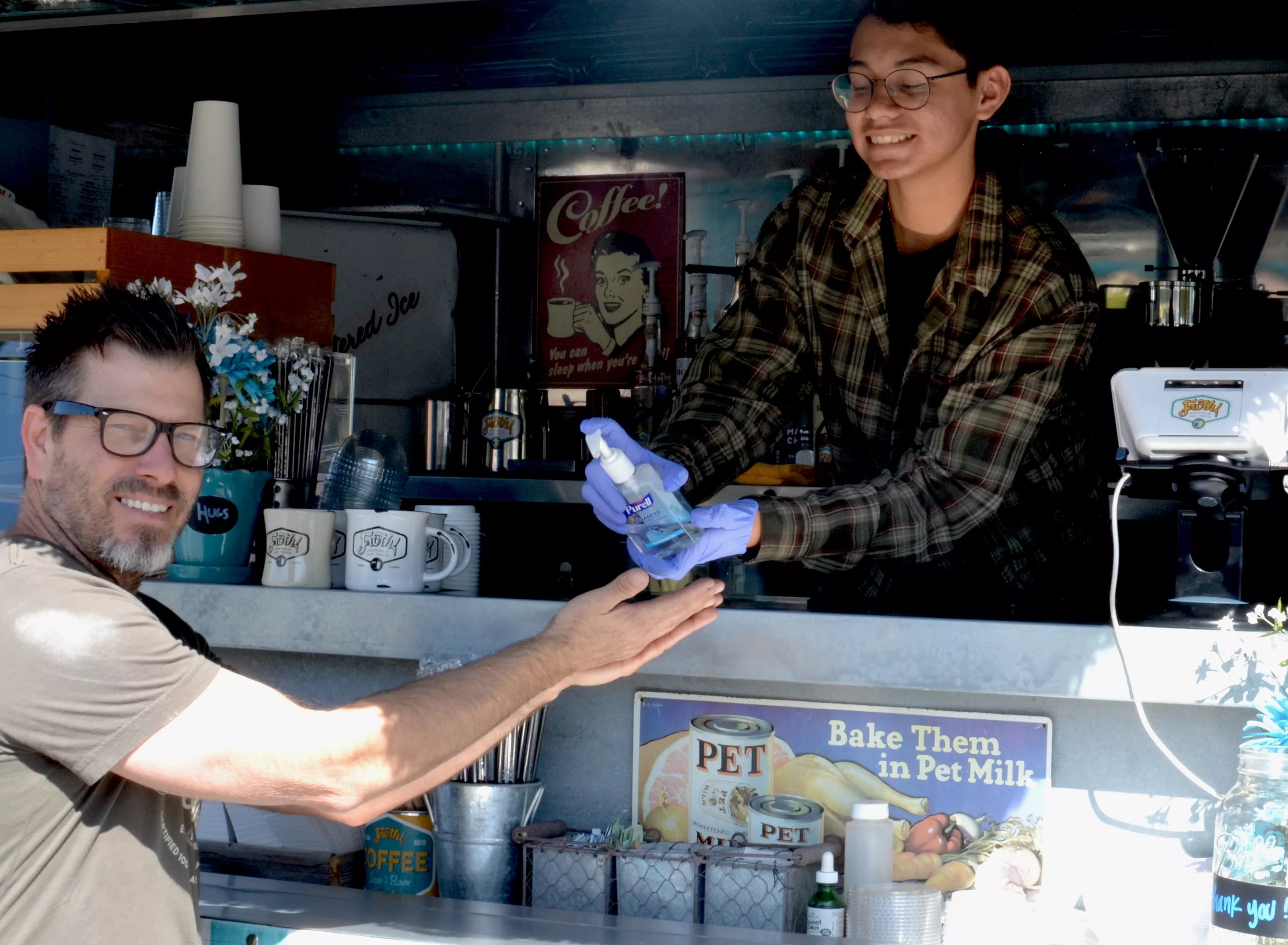 Dean O’Byrne, left, owner of Froth Coffee, and barista Tito Lemus.